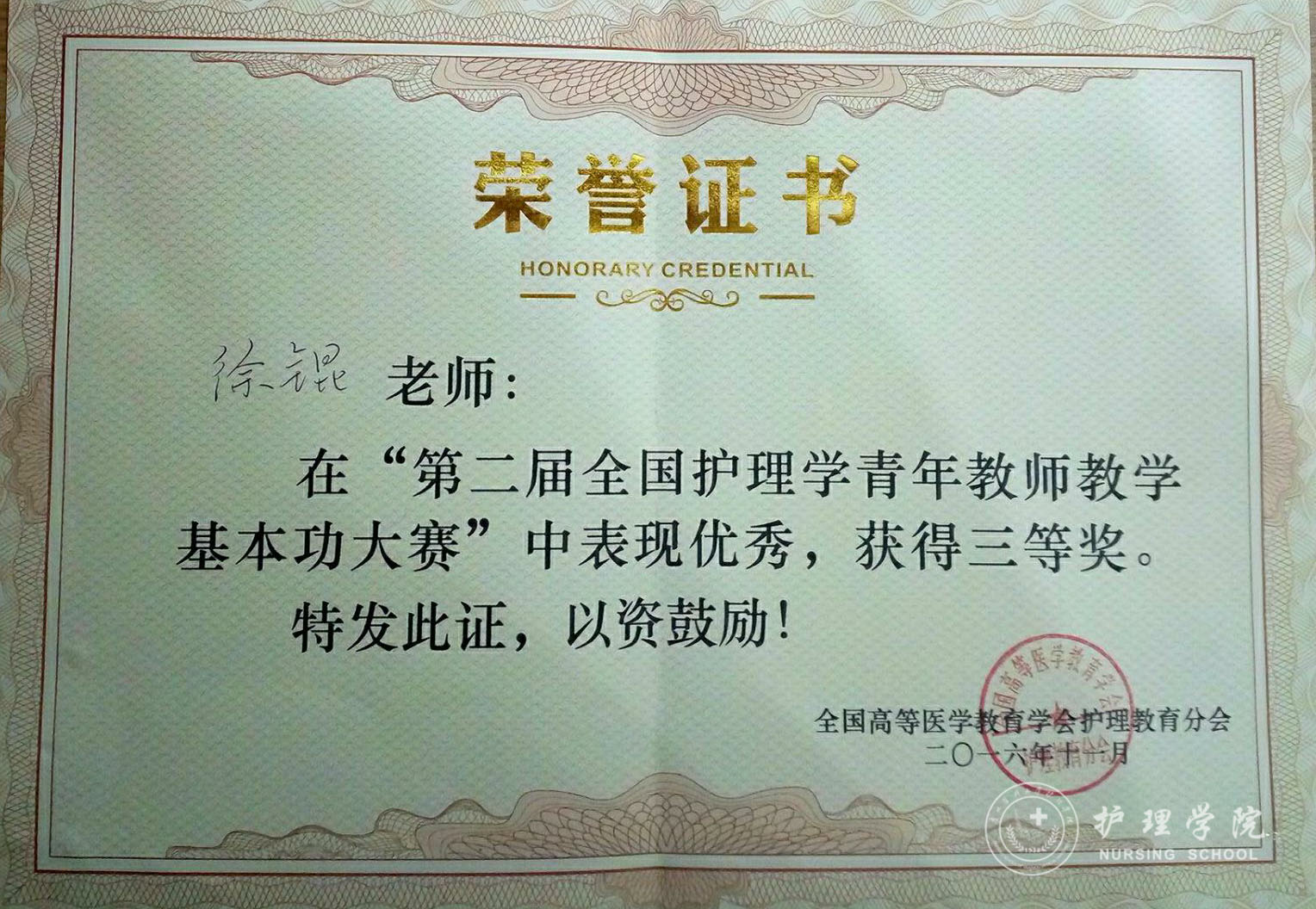 在日前结束的第二届全国护理学青年教师教学基本功大赛上,我校BEAT365英国官网教师徐锟以扎实的教学基本功脱颖而出,成为贵州唯一进入决赛的选手,并最终荣获三等奖。