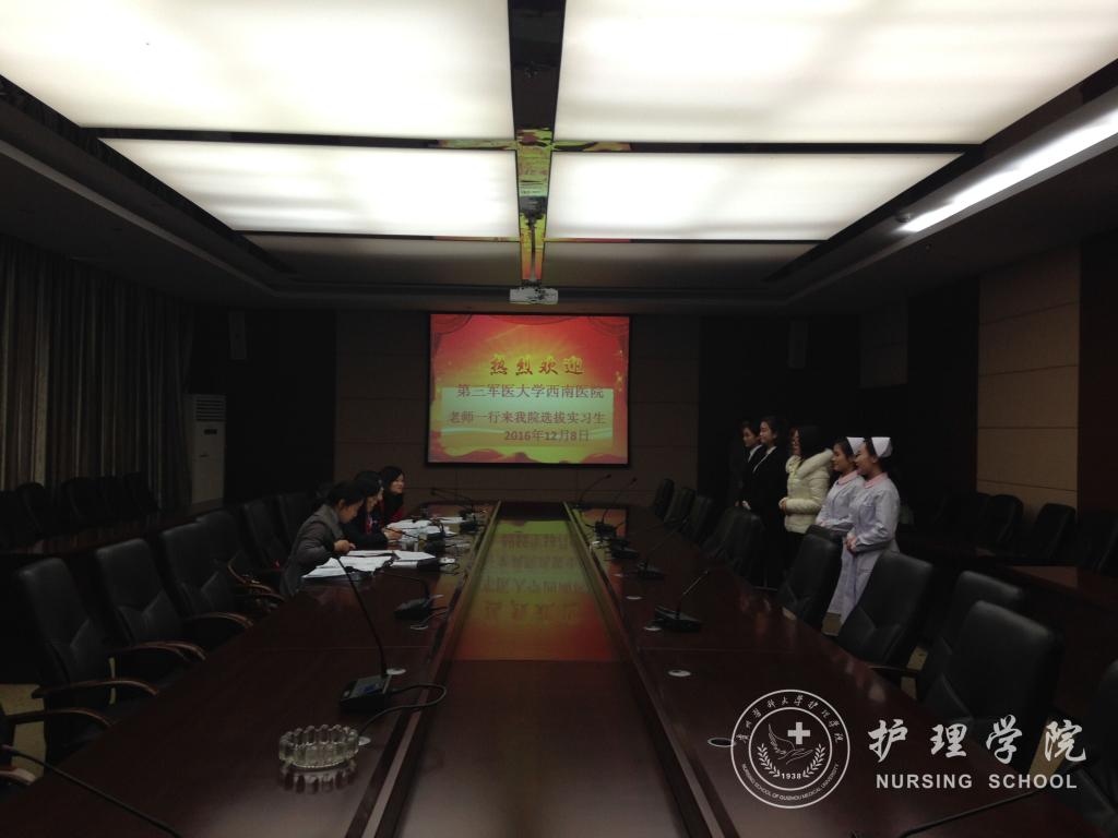 12月8日第三军医大学西南医院护理部郭上铃助理等一行四位老师来我校BEAT365英国官网开展选拔意向性实习生工作。我院分管教学副院长刘志燕、生产实习科科长柳忠燕老师、辅导员李杏春参加了此次选拔工作,共有八十余名2014级护理本科(含助产专业、专升本)同学参加本次实习生选拔。