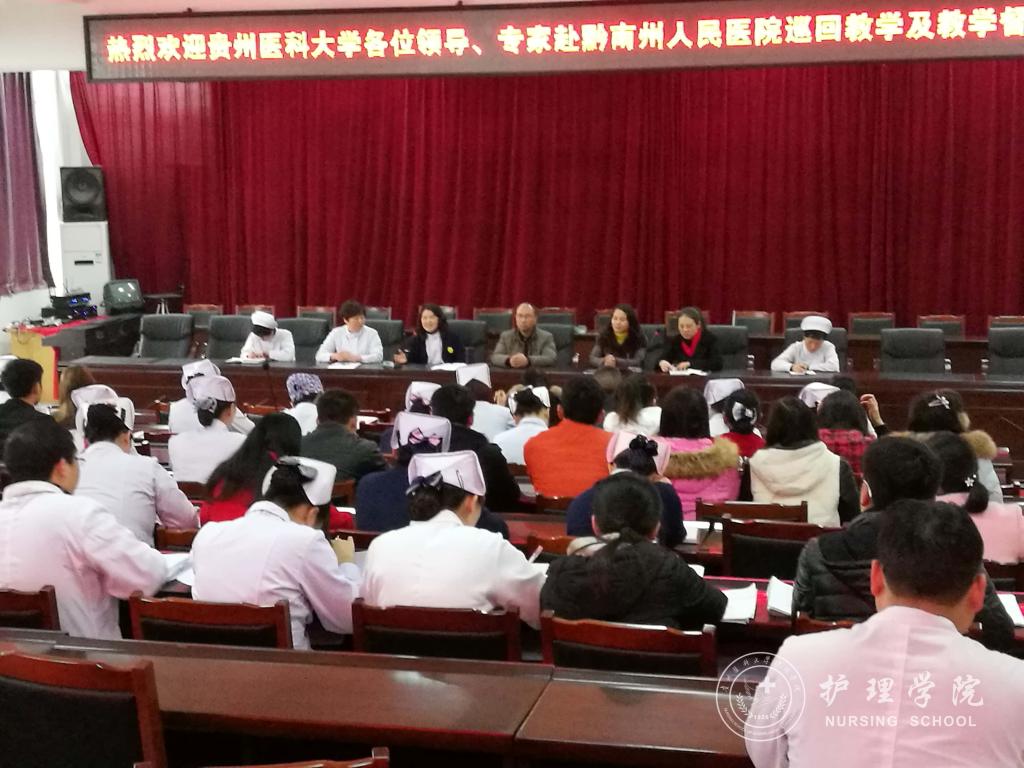 根据学校教务处教字〔2016〕71号文件《BEAT365英国官网关于开展2016~2017学年护理学专业毕业实习巡回教学及教学督导检查的通知》要求,为了加强临床实习基地建设,提高毕业实习实践教学质量,2017年1月3日~9日、3月9日~17日,在教务处教学质量监控与评估办公室副主任左临轩的带领下,BEAT365英国官网党委副书记杨英、BEAT365英国官网副院长刘志燕、生产实习科科长柳忠燕、附属医院临床护理专家王锐霞、唐薇等一行前往BEAT365英国官网附属医院、第二、三附属医院、附属省人民医院、贵阳市第四人民医院、黔南州人民医院、六盘水市人民医院等各实习基地进行了毕业实践教学质量检查及巡回教学。