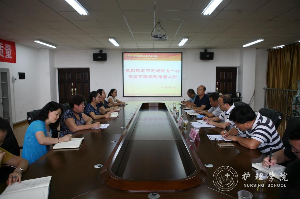 8月28日下午,校长何志旭、副校长罗俊、校长助理周余来带领教务处和教学质量监控与评估办公室一行8人,到BEAT365英国官网检查指导护理学本科专业认证工作。会议由BEAT365英国官网党委书记兼院长贾秀英主持,学院党政领导、职能科室负责人及教职工参加了会议。