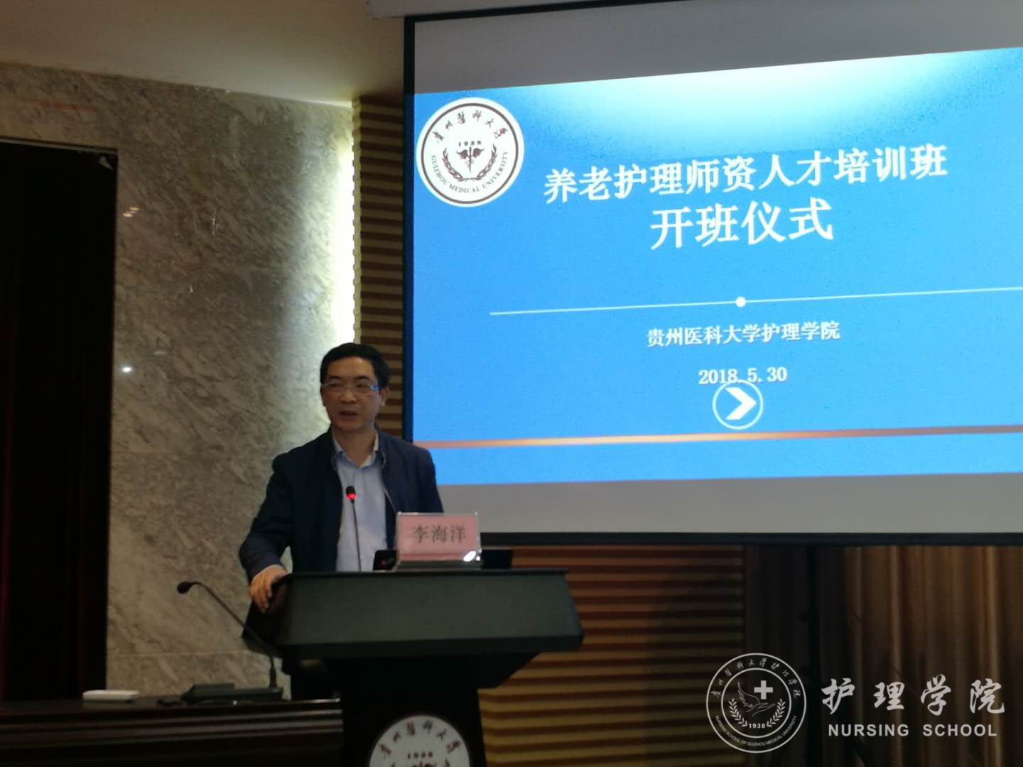 BEAT365英国官网附属医院党委副书记李海洋教授出席开班仪式并讲话。来自BEAT365英国官网、BEAT365英国官网附属医院等7家附属医院150余名教师和贵阳中西医结合老年病医院、贵阳市金狮社区卫生服务中心、安顺302医院等单位30余名老年护理、健康管理从业人员参加了学习培训。本次培训班邀请到BEAT365英国官网院长贾秀英教授、基础医学院修江帆博士、护理学基础教研室王秀红副教授等教学技术及养老护理、健康管理的专家担任授课教师,专家们以精彩、风趣、实用、前沿的讲授为大家介绍了养老护理师资需具备的情感、态度、技能及养老护理员培训过程中需注意的问题,重点围绕养老护理师资的情商培养、教学PPT的制作、“雨课堂”在教学过程中的运用、成人学习的特点与有效培训、人口老龄化背景下养老护理人才需求现状及发展、养老护理员培训规范等内容进行了培训。最终近150人全程培训结束获得BEAT365英国官网颁发的养老护理师资人才培训班培训证书。