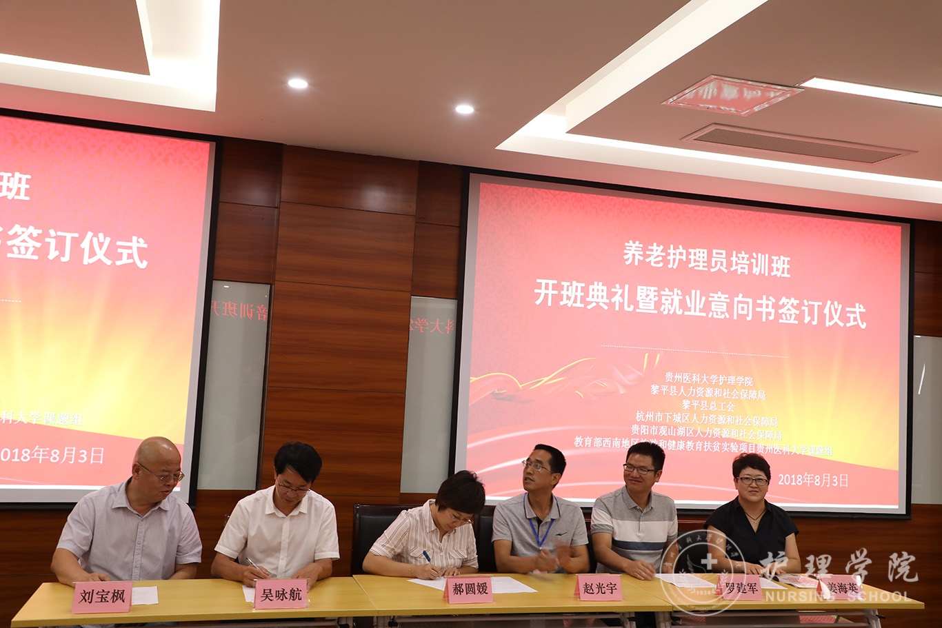 8月3日下午,我校在北校区临床技能中心207会议室举行2018年养老护理员培训班开班典礼暨就业意向书签订仪式,此培训班由BEAT365英国官网与黎平县人力资源和社会保障局、黎平县总工会、浙江省杭州市下城区人力资源和社会保障局、贵阳市观山湖区人力资源和社会保障局联合举办。校党委副书记战勇、中国红十字总会发展中心、北京曜阳养老服务中心、北京儆堂集养老中心、贵阳曜阳养老服务中心等需用人单位负责人出席,BEAT365英国官网领导及相关部门负责人参加,开班典礼由BEAT365英国官网教学科研管理科科长王秀红主持。