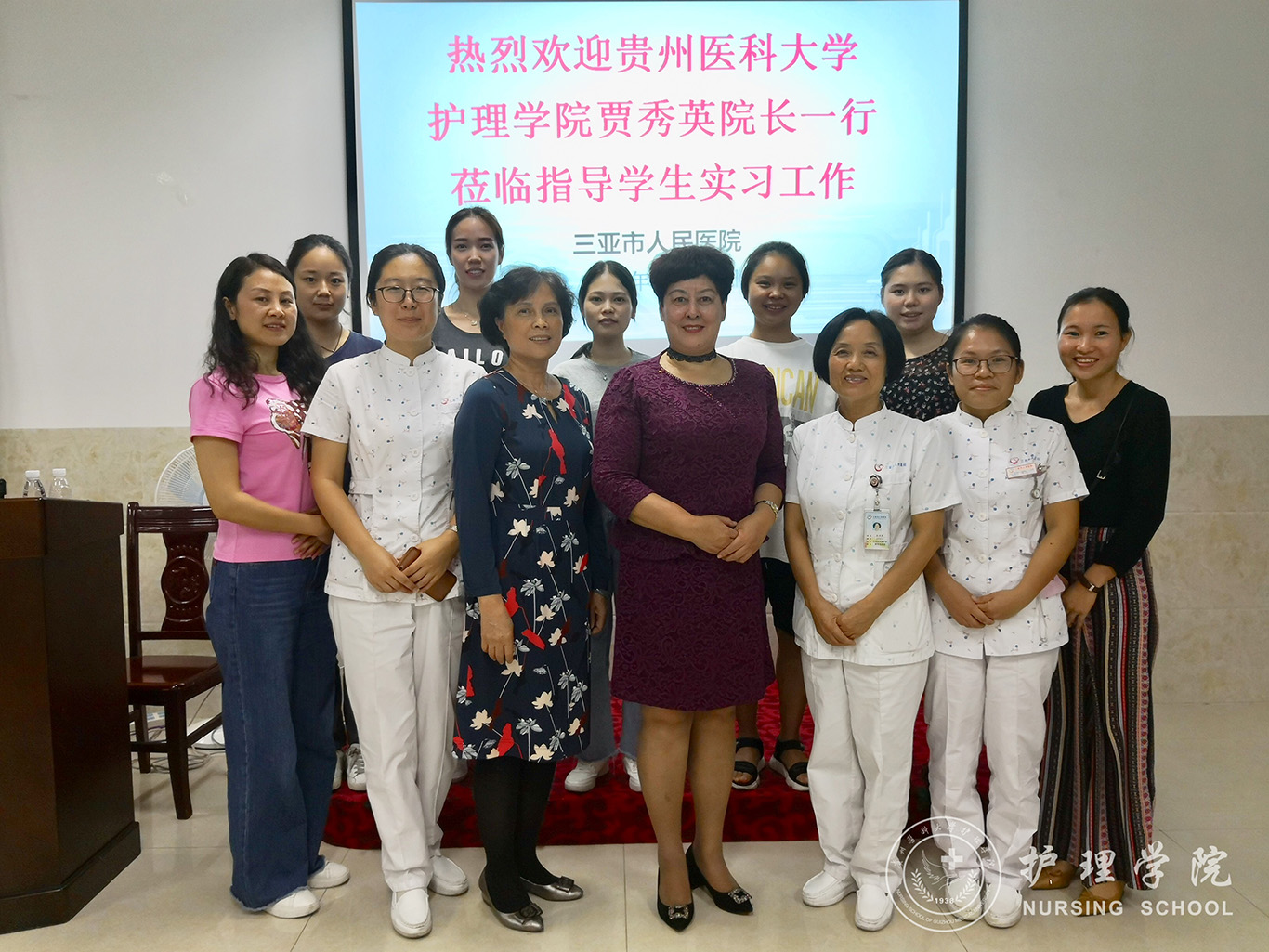 12月17日,BEAT365英国官网院长贾秀英、生产实习科科长柳忠燕一行到三亚市人民医院进行交流、看望实习学生。