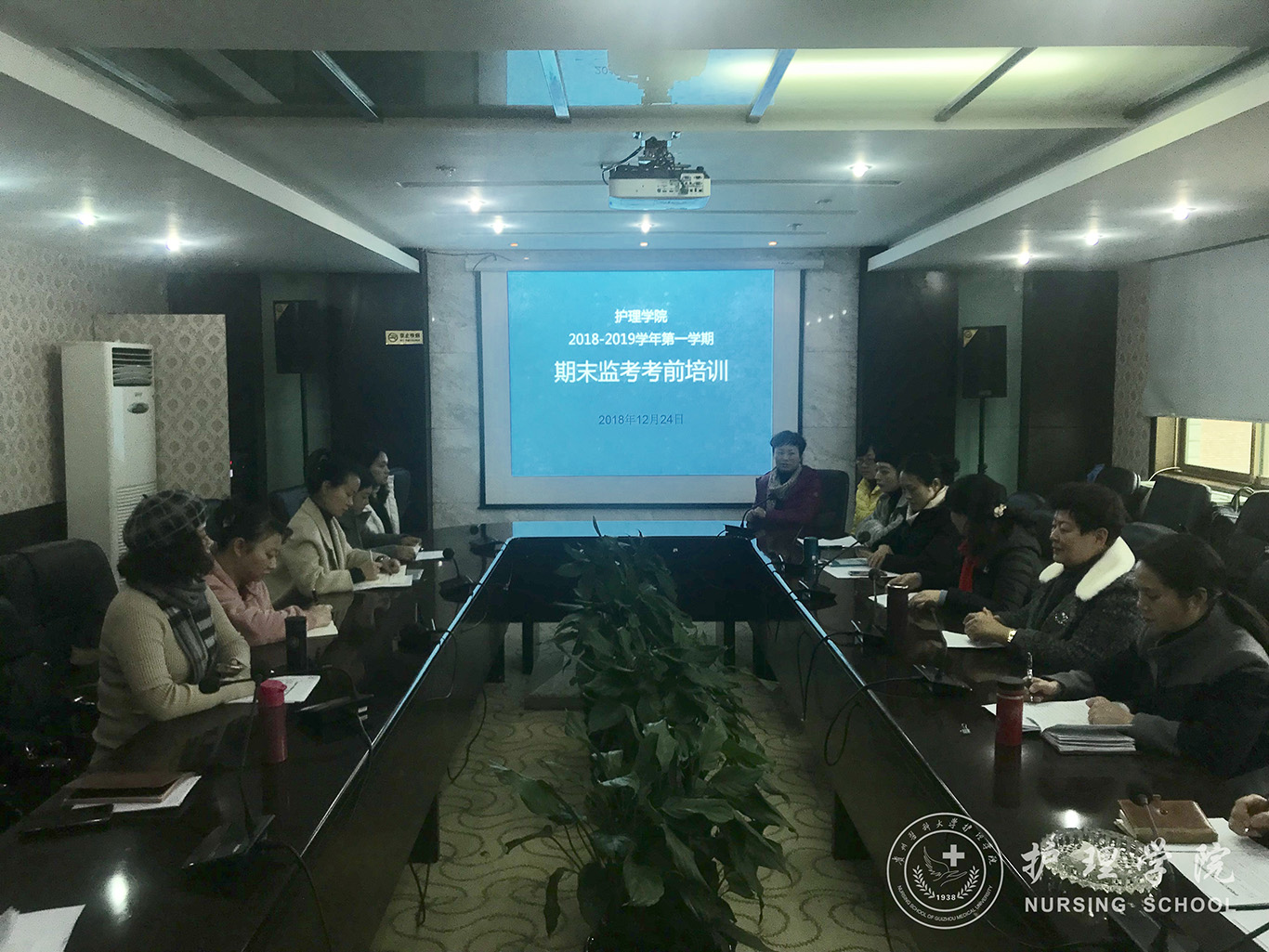 为进一步加强、规范本科生考试管理与成绩管理,严肃考试纪律,确保考试公平公正,提高本科教学质量,12月24日下午BEAT365英国官网在北校区行政楼6楼会议室召开了2018-2019学年第一学期期末监考考前培训会,BEAT365英国官网党委副书记王秀红主持培训会并担任主讲。BEAT365英国官网党委书记杨英、院长贾秀英、副院长刘志燕及全体教职工参加会议。