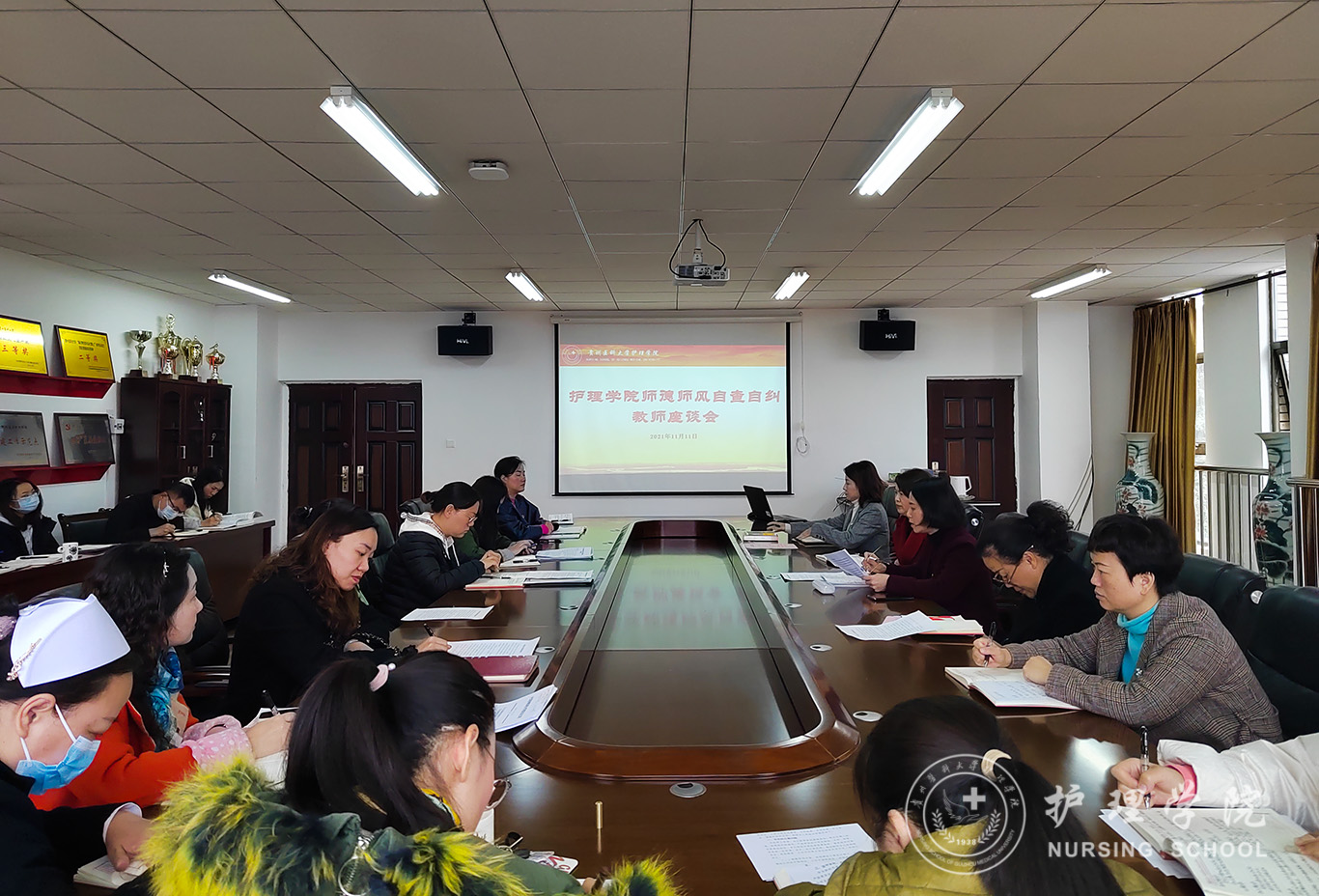 会上,首先由教学科研管理科科长卢海霞组织学习《关于开展师德师风自查自纠和专项整治工作的通知》及《BEAT365英国官网开展师德师风自查自纠和专项整治工作方案》。紧接着,张仁莉组织学习《习近平总书记关于师德师风的重要论述内容》《BEAT365英国官网师德师风考评办法(试行)》《BEAT365英国官网师德师风负面清单和失范行为处理办法》等。随后,老师们开展交流发言,提出在教学过程中要坚持立德树人,重视课程思政,将师德师风要求贯穿到教书育人全过程;同时结合我院师生援遵抗疫精神,加强对护生职业担当的责任感和使命感的引导。