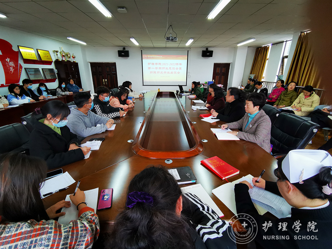 会上,各班同学代表将班级中反馈较为集中的教学相关问题进行汇报,将学习中遇到的困惑、难点等问题进行反馈及建议。内容包括:部分基础课程授课重点不突出,学习掌握难,课堂互动少、学习积极性不高。建议专业课程在授课过程中多结合临床实例,优化课程授课安排及方式,增加护理职业发展前景方面的引导。同学们在反馈教学问题的同时也对自身的学习态度进行了深刻反思。针对同学们提出的问题,在场的老师们给予了现场解答及指导。