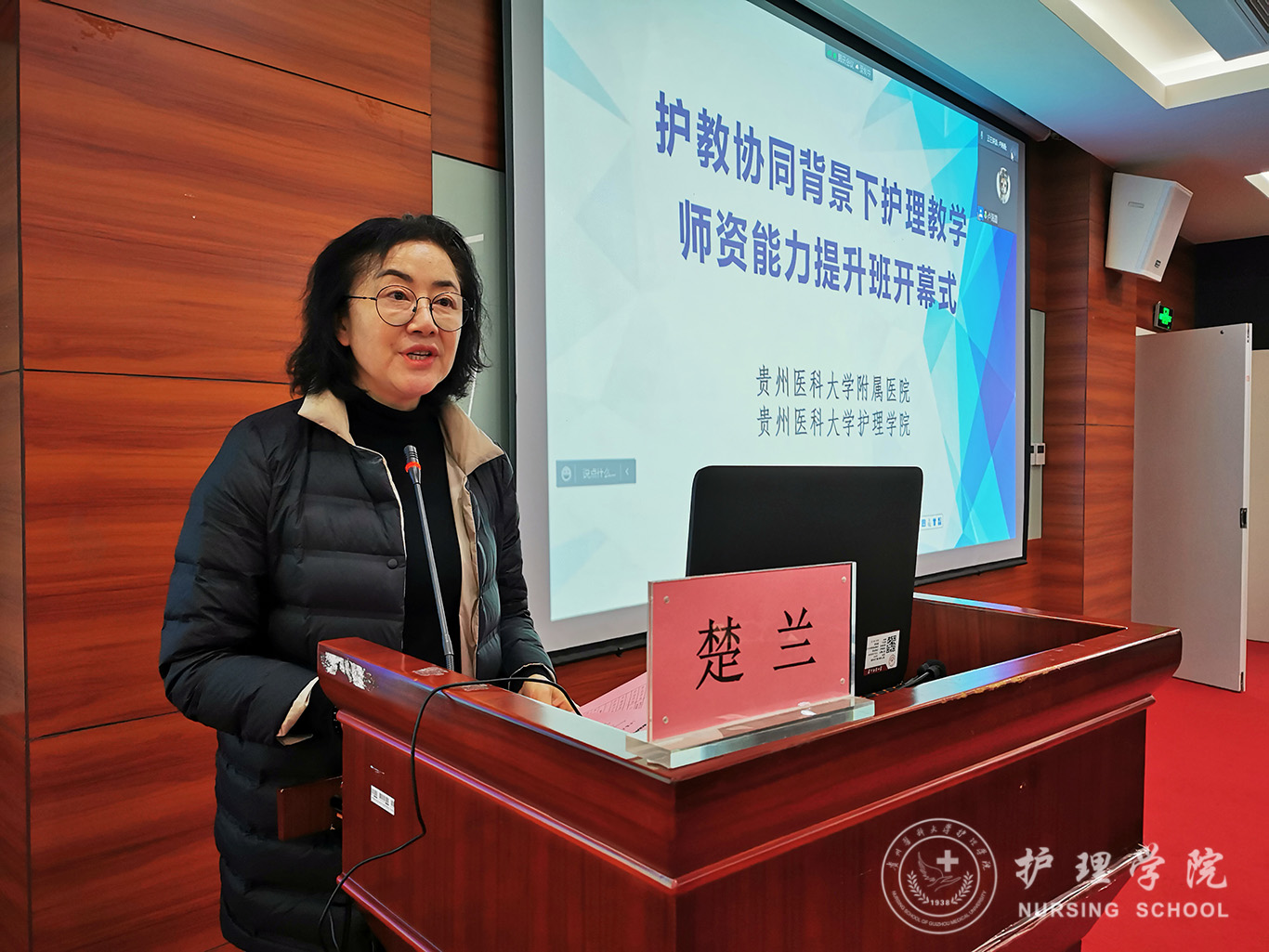 楚兰教授在开幕式致辞中对各位专家、教师的到来表示热烈欢迎。她希望通过会议的召开,能有效推进医教协同,提高我省护理教师队伍教育教学水平和护理教学质量,推动贵州护理事业的发展。同时她也肯定了BEAT365英国官网在教学工作中做出的努力和取得的成绩,她指出:医学教育要把专业教育与创新创业教育深度融合,以人才培养为中心,全面落实立德树人的根本任务,牢固树立以提高质量为核心的教育发展观,紧紧抓住“高质量发展”这个牛鼻子。她强调:今年是实施“十四五”规划的关键之年,我们要抓住国发〔2022〕2号文件重大机遇,围绕“四新”主攻“四化”,奋力推进教育事业高质量发展。
