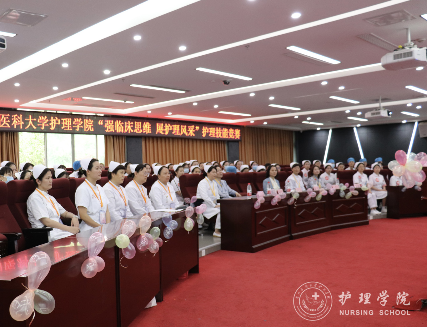 闭幕式由王秀红主持,李亚玲表示本次竞赛是学院近几年举办的规模最大的一场学生赛事,是对我院护生技能的一次全面检验,希望同学们未来继续秉承患者至上的人道主义精神,勇敢践行“敬佑生命、救死扶伤、甘于奉献、大爱无疆”的医者精神,努力将自己塑造成一名具有高尚医德的护士。杨英寄语广大学生要珍惜学习时光,勇担神圣使命,以仁心仁术造福人民,把个人理想与人民健康紧密相连,为助力健康中国贡献青春力量。最后宣布本次“强临床思维 展护理风采”纪念5.12国际护士节护理技能竞赛圆满成功!