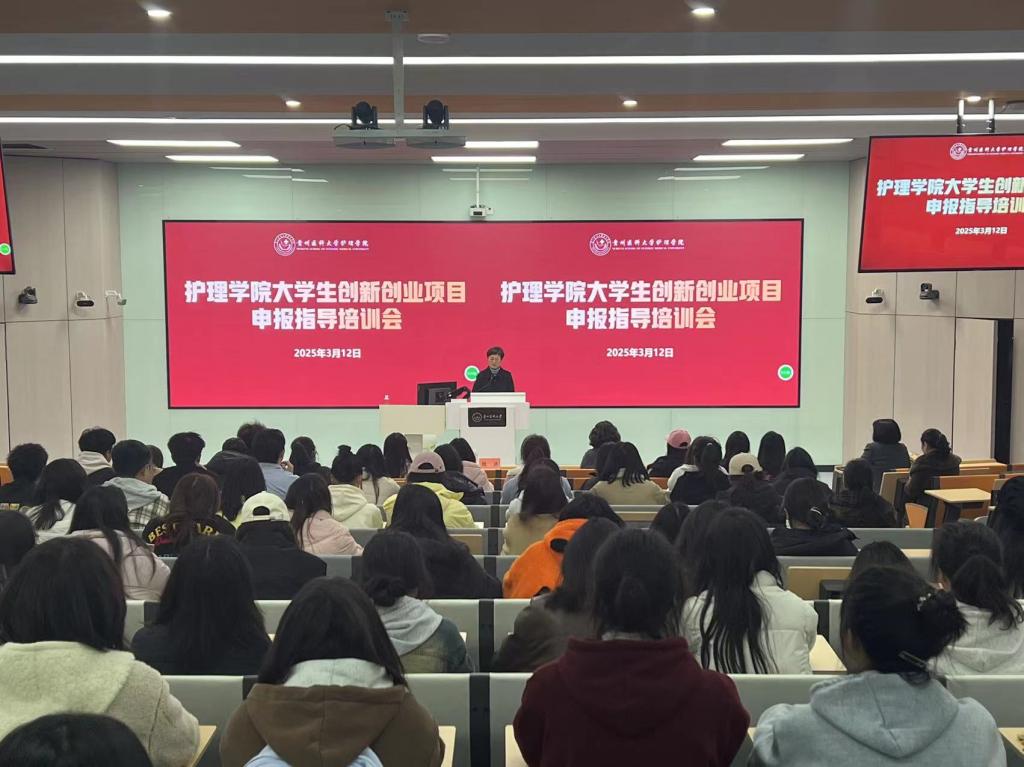 最后王秀红指出,大学生创新创业训练项目是提升学生实践能力和创新素养的重要平台,也是学院落实学校“双创育人”战略的核心举措。她强调,本次培训会旨在帮助学生系统掌握项目申报的全流程与关键要点,鼓励学生结合护理学科特色,挖掘具有学术价值或市场潜力的选题,将理论知识与实践创新深度融合,为后续高质量完成项目奠定基础。