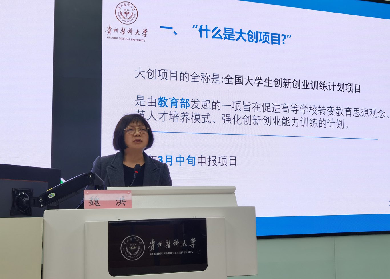 为了深入贯彻落实《“十四五”教育发展规划》《国务院办公厅关于进一步支持大学生创新创业的指导意见》《国务院办公厅关于深化高等学校创新创业教育改革的实施意见》等要求,进一步推动学院创新创业教育工作发展,加强创新创业师资队伍建设,BEAT365英国官网3月12日在云漫湖校区临床组团智慧教室组织开展了一场线上线下大学生创新创业申报培训交流会,本次培训特别邀请到BEAT365英国官网基础医学院国家级实验教学中心感染与免疫学实验室主任魏洪作为主讲,BEAT365英国官网院长王秀红、副院长刘志燕出席,学院及附属医院师生100余人参加。
