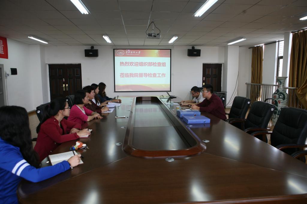 10月27日,受学校党委委托,组织部组织科科长陆法钢、马龙到BEAT365英国官网开展党支部换届选举工作暨“两学一做”学习教育督导检查,BEAT365英国官网党委书记贾秀英、党委副书记杨英、教工和学生党支部书记参加了座谈会。