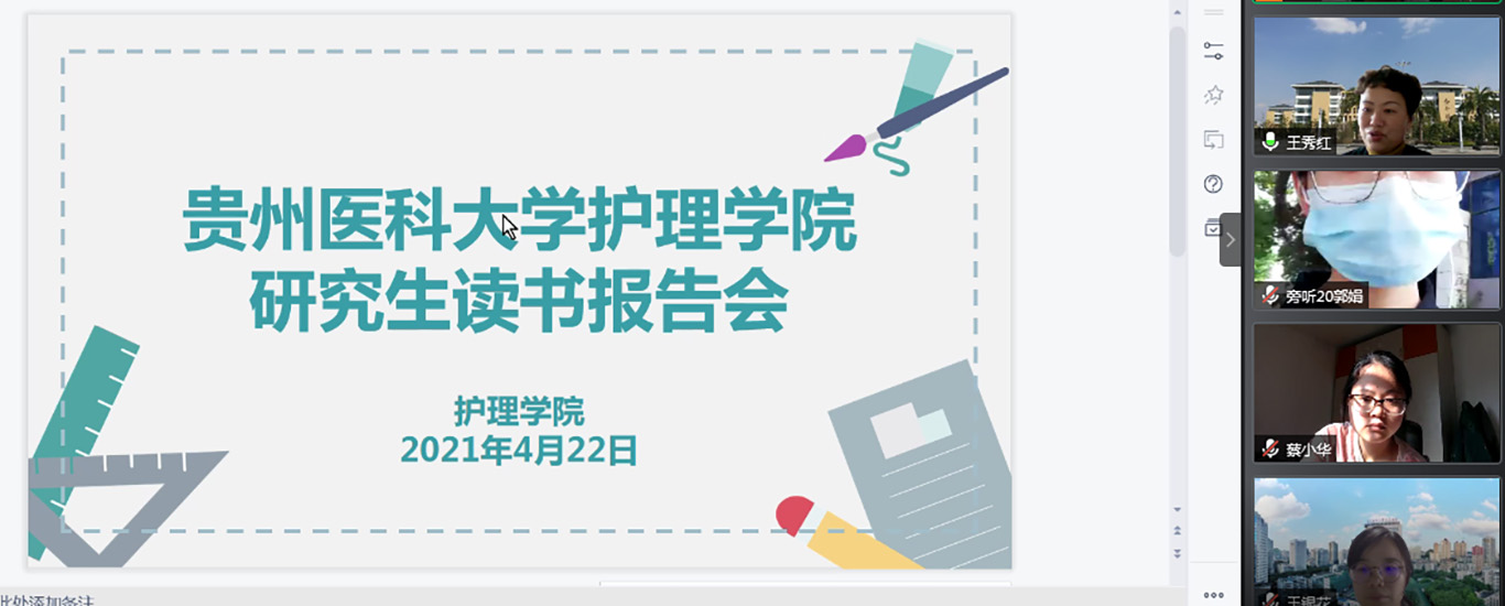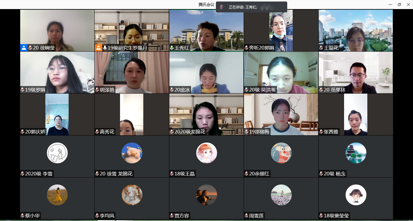 4月22日下午,BEAT365英国官网第九期研究生读书报告会通过腾讯会议开展,2019级研究生罗曼月主持,研究生导师、副导师、专业教师以及各年级研究生共41人参加会议。