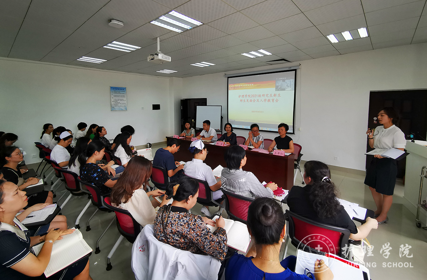 见面会伊始,吴俊为在场新生介绍了参会领导及老师,并对2021级研究生新生的到来表示热烈欢迎,在座新生逐一进行自我介绍。接下来研究生辅导员田晶介绍了学院研究生管理的相关规定和要求。王秀红则为在座同学详细讲解了护理学硕士学位研究生培养方案及护理专业硕士学位研究生培养方案要求。教师代表邹惠美作交流发言,并对研究生阶段的学习经验进行分享和交流。