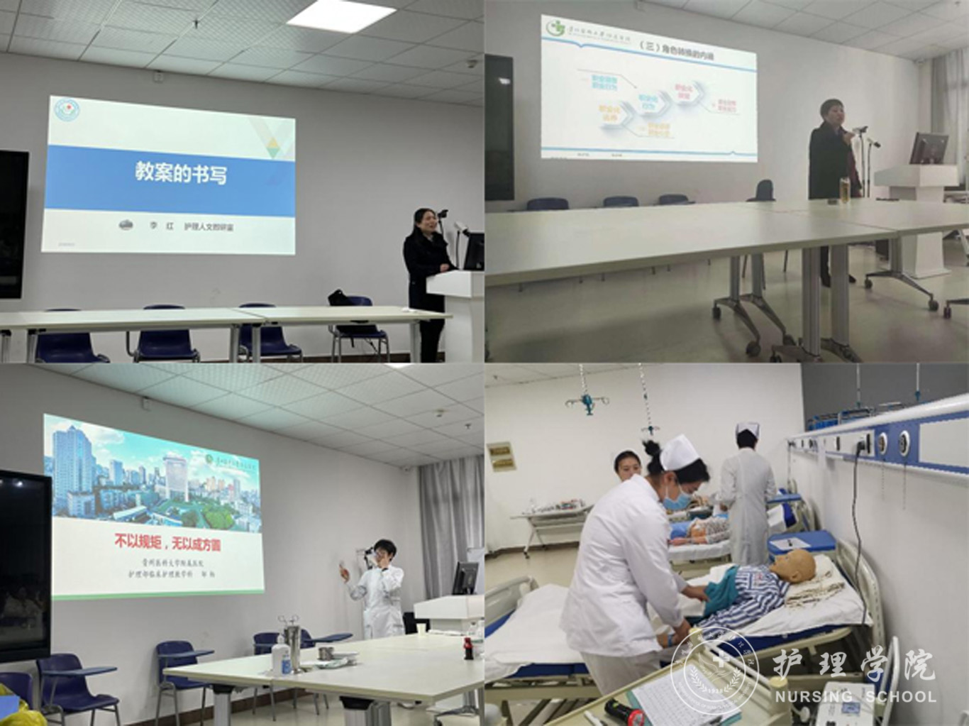 为期2周的培训由BEAT365英国官网及附属医院优秀师资担任教师,BEAT365英国官网院长李亚玲以“从新手到专家——临床护理专家的成长之路”为题,与同学们进行了深层次的沟通和交流,使同学们树立了转变角色的思想意识,加速了同学们的角色转变适应过程。附属医院护理部办公室主任凌文静结合自身经历,为同学们生动地讲解了如何对患者进行健康教育。导师王锐霞主任护师为同学们进行“研究生临床实习中的角色要求、环境适应”的精彩讲座,强调临床工作中有效沟通的重要性。各教研室和附院护理骨干教师讲授了教案的书写、如何进行护理查房、优良事件以及科研小技巧的分享等多方面的相关内容。除精彩实用的理论讲授外,“双师型”团队对同学们进行了基础护理技能操作强化培训及考核。