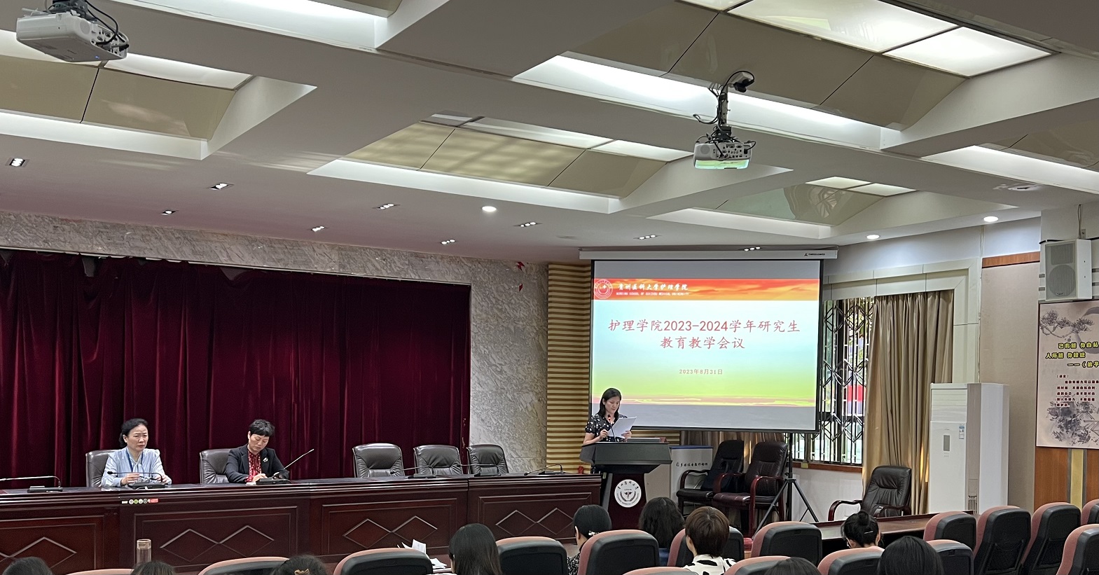 8月31日,BEAT365英国官网在北京路校区道德讲堂召开了2023-2024学年第一学期研究生教育教学会议。学院领导、全体专业教师、全体导师、副导师、研究生临床带教指导教师、课程负责人、教学科研管理科全体教师、研究生辅导员参加。会议由教学科研管理科科长卢海霞主持。