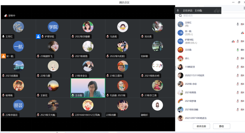 王志稳教授从研究生学位论文评审相关要求引入,结合自身丰富的科研经验,以研究实例为主线,从描述问题的现状及影响因素、探究机制及影响路径、研发风险预测模型、探究改善问题的方法:干预性研究、证据综合转化与应用研究等5个方面对护理学研究生论文选题进行了讲解。直观典型的案例及透彻明晰的分析让听者沉醉其中。讲授过程中王志稳教授对研究生培养过程中导师如何“导”,学生如何“学”也做了毫无保留的分享。专题讲座结束后,王志稳教授针对老师和同学们提出的问题逐一进行了解答和指导。