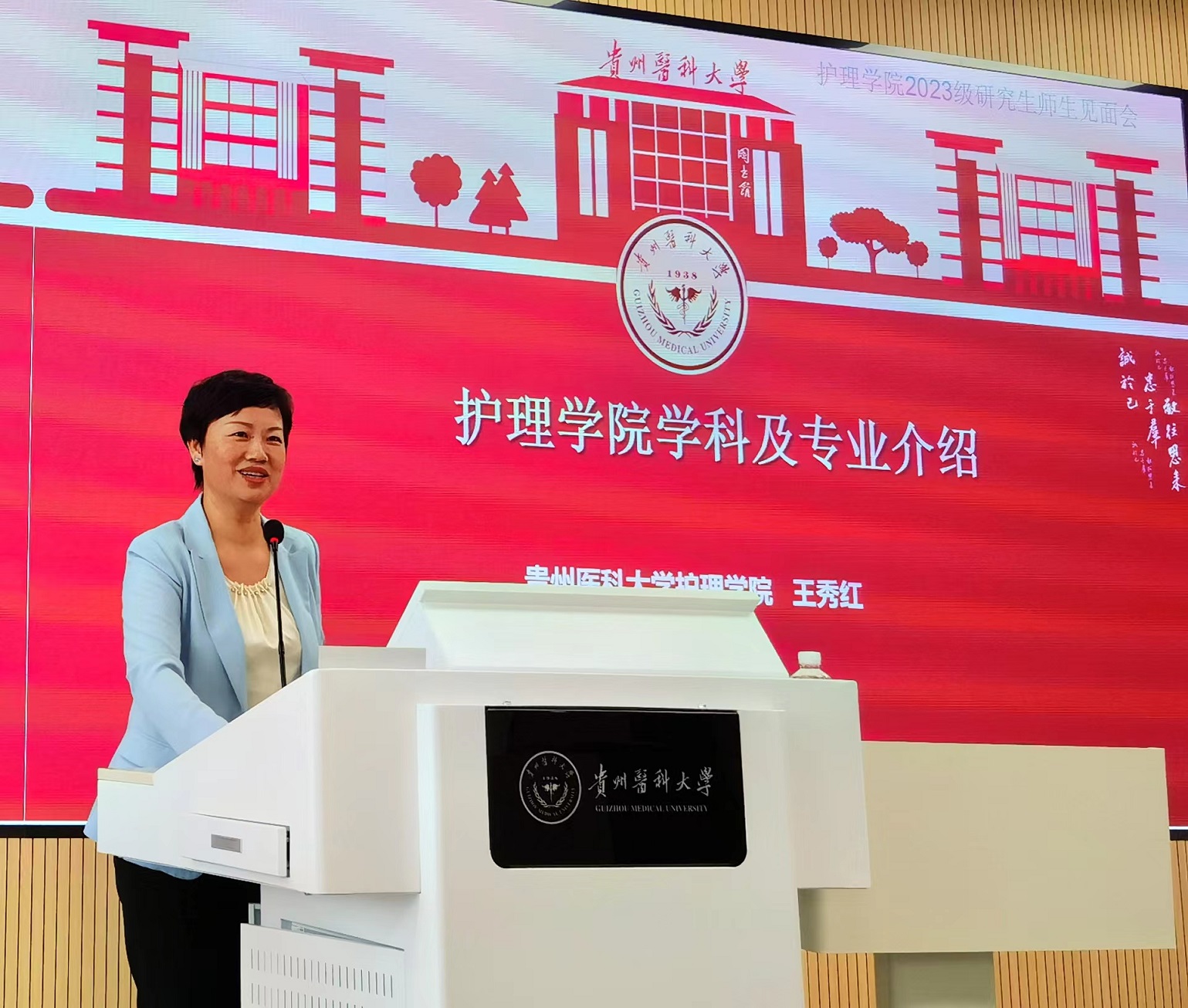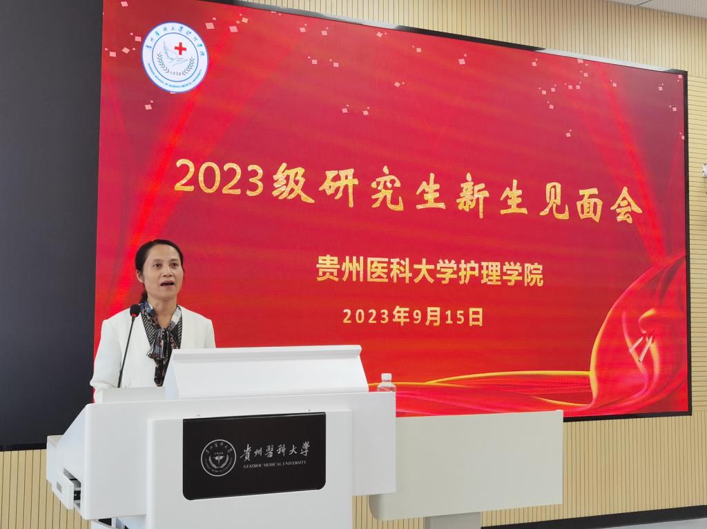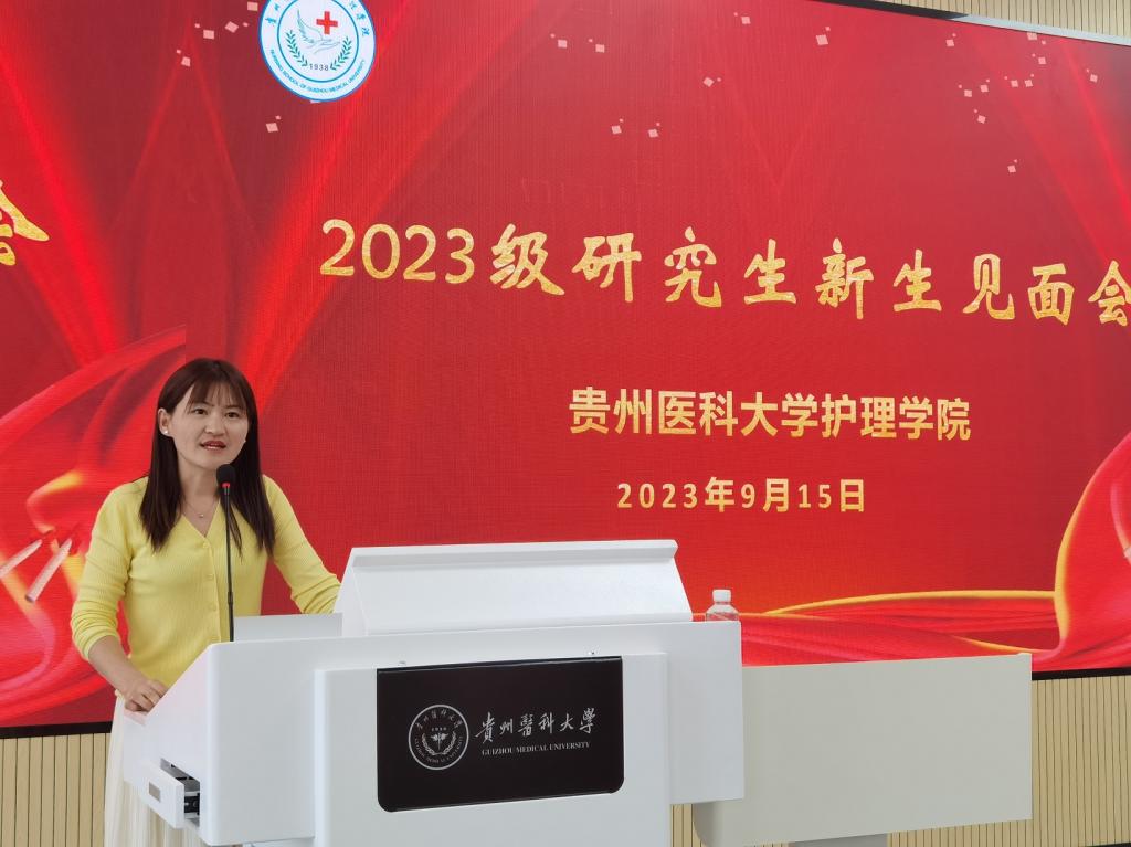 接下来王秀红给同学们介绍了学校和学院的历史沿革和护理学科建设与研究生教育的发展及现况,同时鼓励同学们传承协和精神、心怀责任担当,踏实进取,在新的征程、新的校园开启新的起点,得到新的收获,努力成为百年贵医辉煌篇章的书写人。