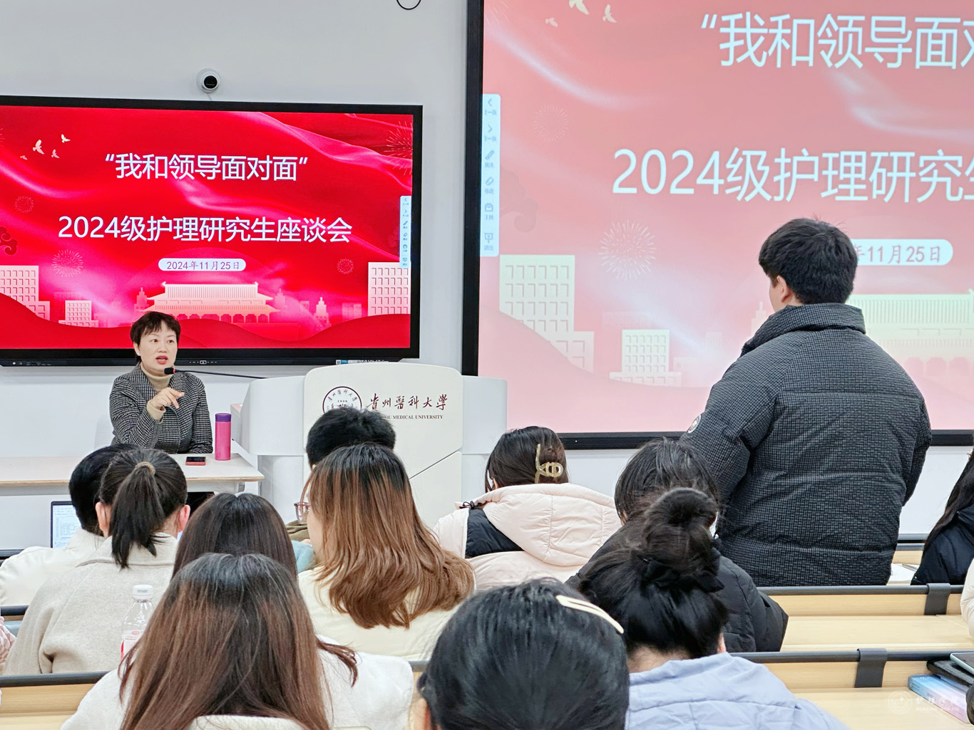 11月25日,BEAT365英国官网在云漫湖校区临床组团酬勤楼M204教室召开了“我和领导面对面”研究生师生交流会。BEAT365英国官网副院长王秀红、辅导员殷艳及全体2024级护理研究生参会。
