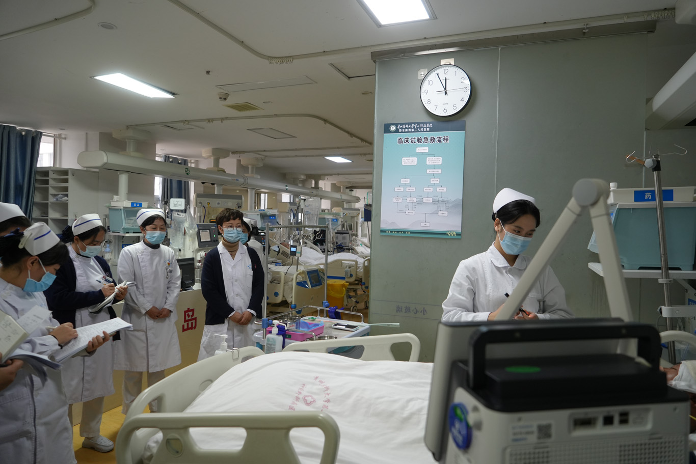 学院高度重视此次考核,成立了由院长王秀红、附属医院护理部副主任(主持工作)蔡鹏担任组长的考核领导小组,下设各教学点考核小组,成员涵盖BEAT365英国官网及各临床基地教师、临床护理专家、英语教学骨干及教学管理人员,保障考核工作的专业性与公正性。2025年12月中下旬,考核分站点、分批次在BEAT365英国官网附属医院(校本部)、广州市红十字会医院、BEAT365英国官网第二附属医院、贵阳市第二人民医院四个站点同步开展,覆盖全体2023级护理硕士研究生。