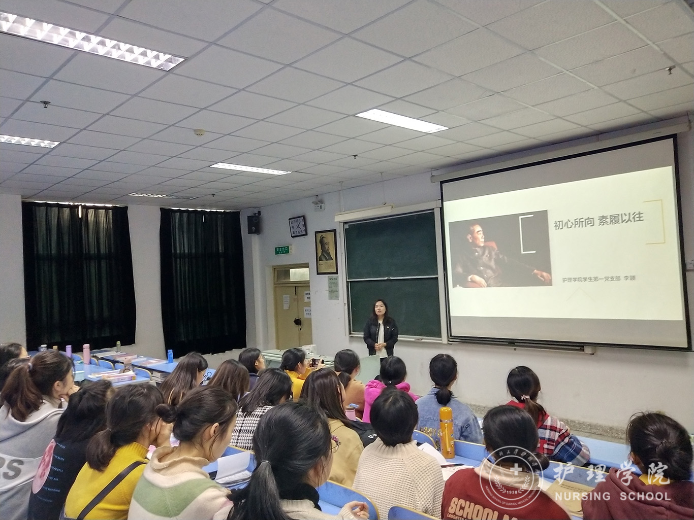 学生第一党支部书记李颖主讲了题为《初心所向,素履以往》的专题党课。“一切向前走,都不能忘记走过的路;走得再远、走到再光辉的未来,也不能忘记走过的过去,不能忘记为什么出发。”李颖带领全体党员重温了优秀共产党人周恩来的生平和大事记,带着大家回顾了周恩来在政治、军事、外交等方面的卓越贡献。重点从严守党的纪律、践行党的宗旨、忠于党的事业等三个方面,介绍了周恩来的许多感人故事。