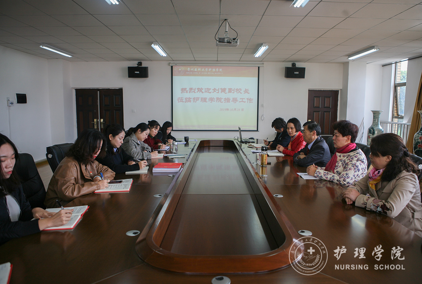 10月28日,党委委员、副校长刘健到BEAT365英国官网开展主题教育专题调研。学院党政领导班子、副科级以上干部、各教研室主要负责人参加调研座谈会。会议由学院党委书记杨英主持。