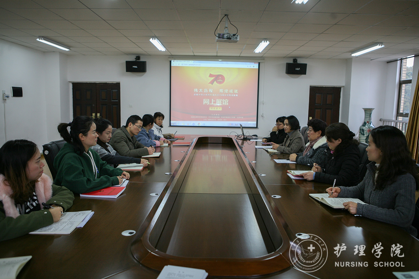 为进一步贯彻习近平新时代中国特色社会主义思想,认真落实“不忘初心、牢记使命”主题教育及弘扬爱国主义精神,11月27日BEAT365英国官网组织全体教职工党员集中观看了“伟大历程,辉煌成就——庆祝中华人民共和国成立70周年大型成就展”网上展馆。