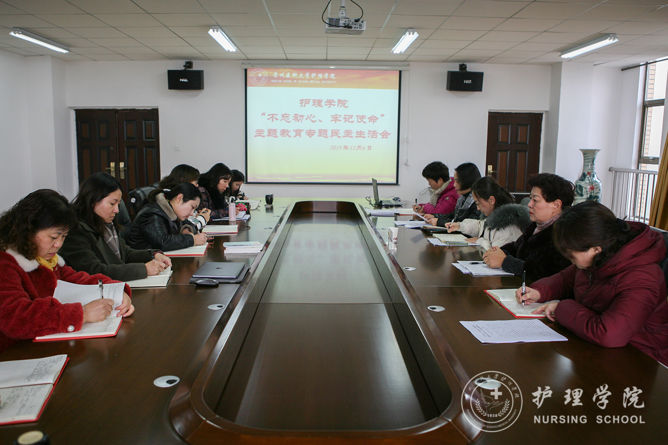为进一步推进“不忘初心、牢记使命”主题教育的开展,按照学校党委统一部署,BEAT365英国官网党委于12月6日上午在南校区百川楼五楼会议室召开“不忘初心、牢记使命”专题民主生活会,校主题教育第二督导组杜美瑾同志到会指导,会议由BEAT365英国官网党委书记杨英主持,学院副科级以上干部参会。