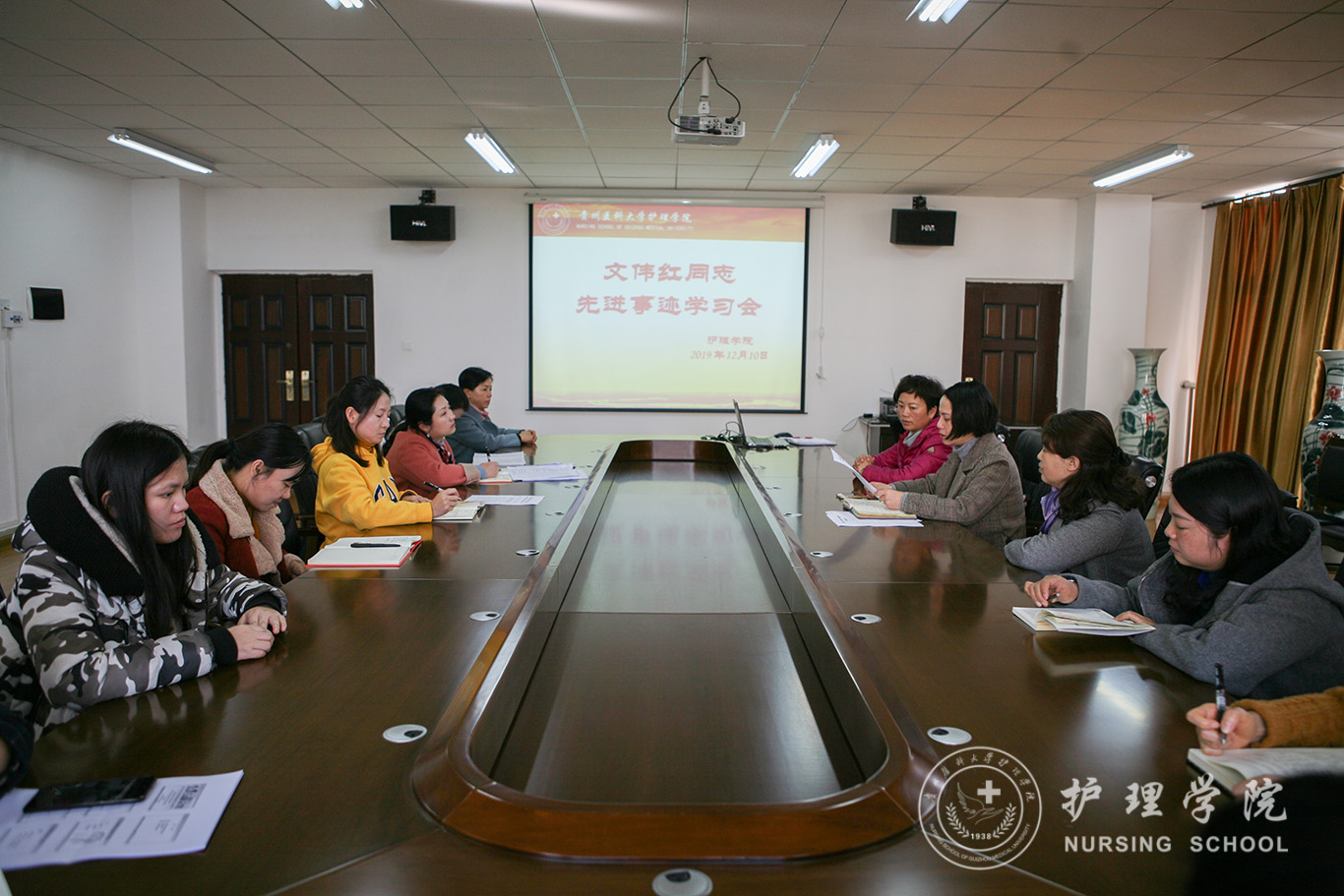 12月10日,BEAT365英国官网召开会议,组织学习了文伟红同志的先进事迹。会议由学院党委书记杨英主持,全体无课无公事教职工参加。