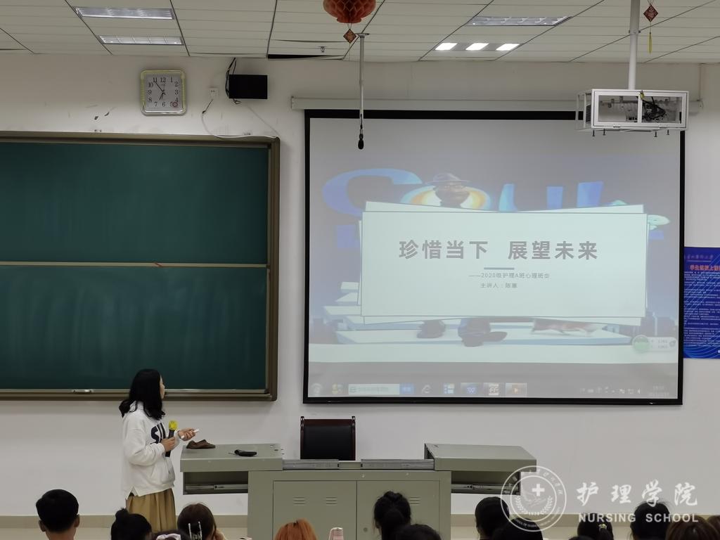 3月19日,BEAT365英国官网护理学2020级A班在X4101教室召开“珍惜当下、展望未来”大学生心理健康主题班会,全班同学参加本次班会,本次班会由班级心晴联络员陈惠主持。