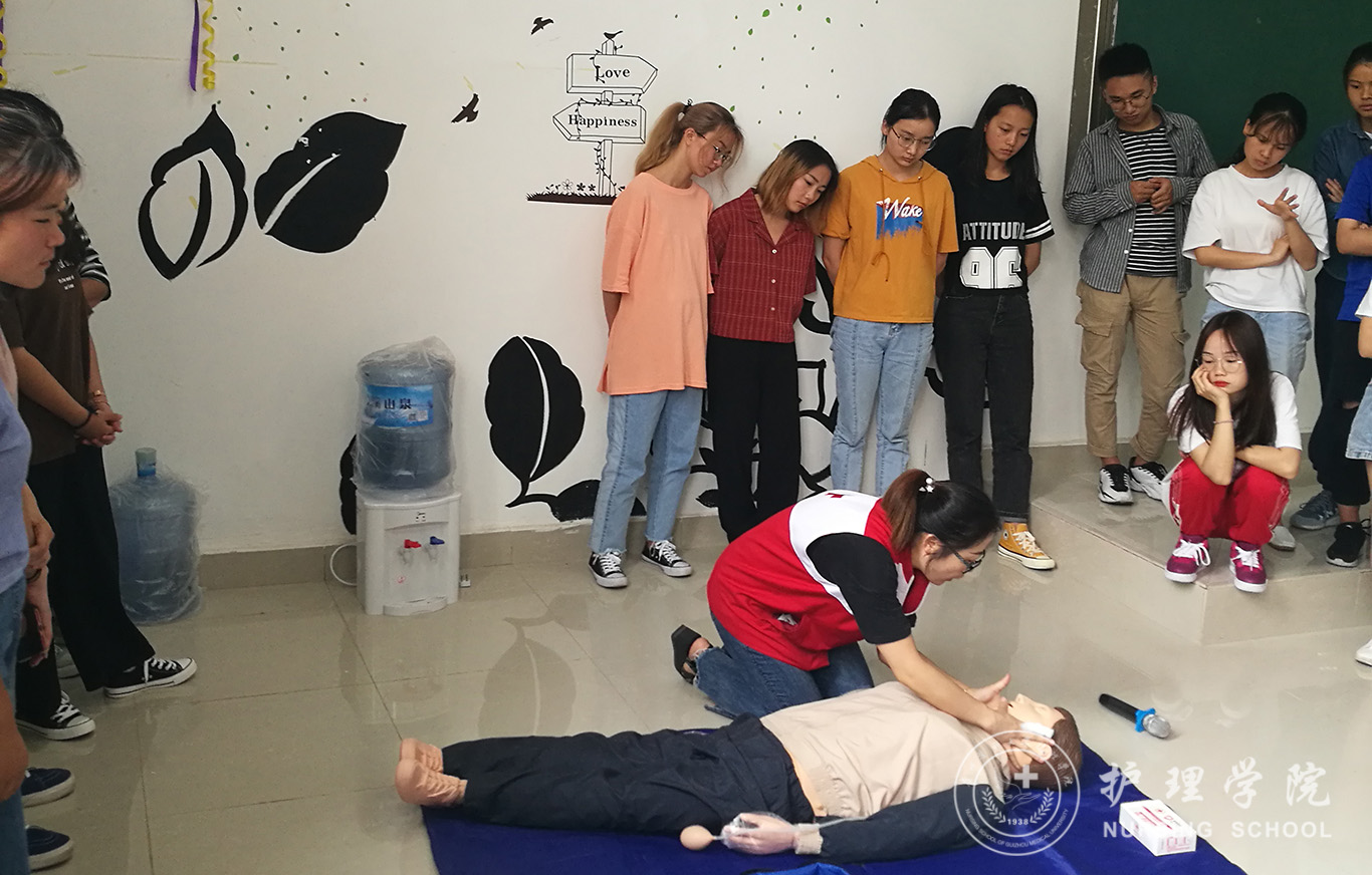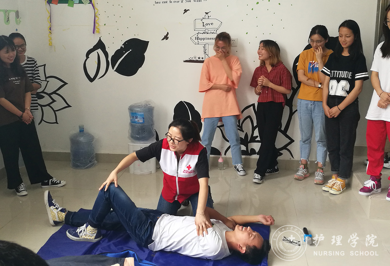 6月29日,由江苏省红十字会、贵州省红十字会、校团委、校红十字会及BEAT365英国官网“贵州红十字护理志愿服务队”共同组织的“青春健康‘救’在身边”——红十字急救员培训在我校南校区广德楼1204教室举行。BEAT365英国官网党委副书记王秀红、辅导员毕丽、校团委宋科伟以及来自BEAT365英国官网和各学院的101名学员参加本次培训活动。此次培训由贵州省红十字会两位老师全程授课指导。