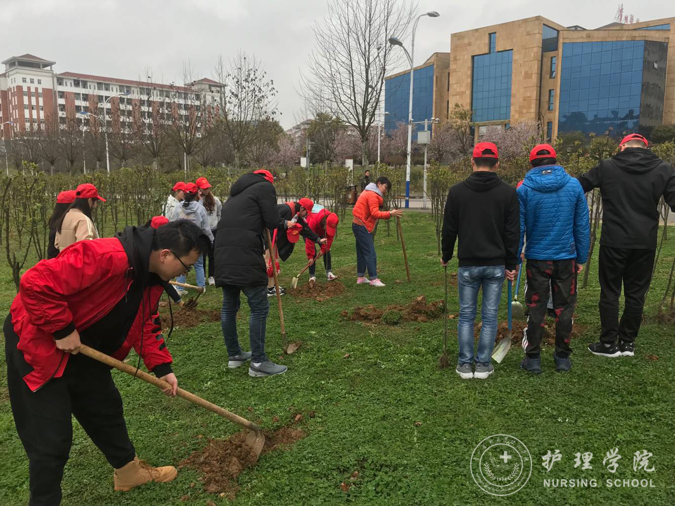 初春的校园乍暖还寒,却挡不住大家的热情。学校文化展览馆旁的空旷草地上,同学们齐心协力,挖坑、落苗、培土、浇水,干得热火朝天。看着种下的一棵棵树苗,并为它们挂上了“学习雷锋好榜样,共创美好校园”的提示牌,每个人的脸上洋溢着期待的笑意,仿佛看到了来年的绽放。
