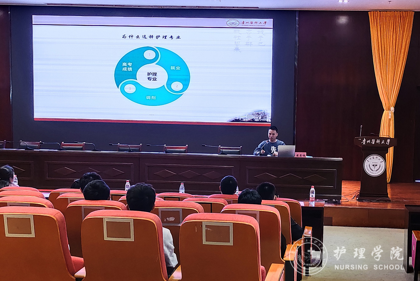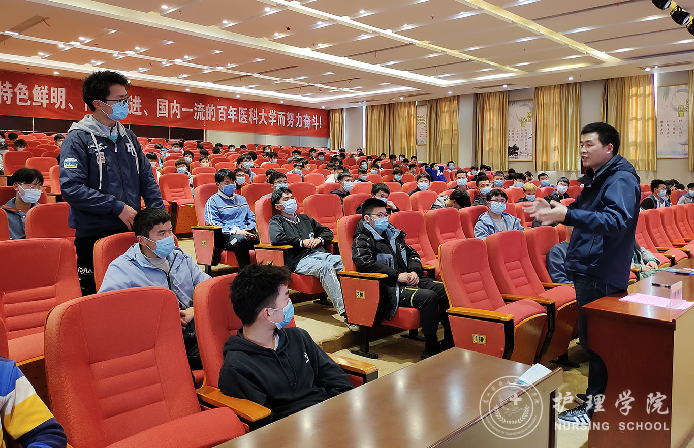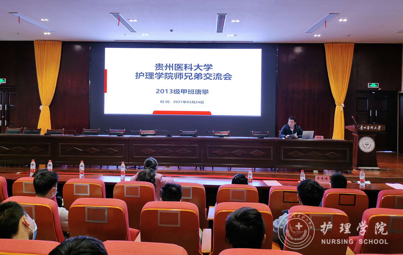 3月24日,为庆祝中国共产党成立100周年,弘扬红色经典,共庆抗疫胜利,稳定男护生专业思想,BEAT365英国官网在南校区道德讲堂开展了“男丁格尔”校友事迹分享交流大会,会议由BEAT365英国官网团委主办,男护生协会组织进行并邀请了2013届优秀校友黄秀峰、2017届优秀校友唐攀主讲。BEAT365英国官网正科级组织员曾敏老师、学生科副科长毕丽老师、学生第三党支部书记刘妍老师以及2019-2020级全体男同学参加了此次会议,会议由BEAT365英国官网学生科副科长毕丽老师主持会议。