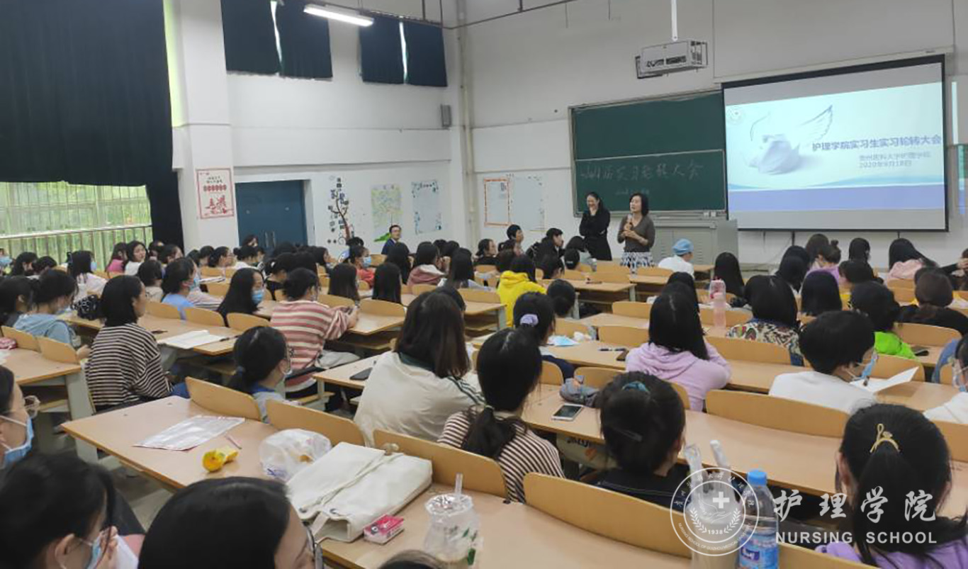 在实习生实习轮转大会上,在贵阳各医院的实习组长分别反映了同学们在实习过程中遇到的问题,如排班问题、职业暴露问题、安全问题、科室氛围问题、人际沟通问题、工作强度问题等。各教研室主任和生产实习科科长以自身临床实习、工作和管理经历现身说法,就同学们反映的问题分别进行了解答和专业思想指导,帮助同学们更好地适应临床实习工作。刘志燕在总结时强调,同学们要从适应角色转变;培养吃苦耐劳的精神和专业奉献精神;理论联系实际,积极主动学习;学会沟通,善于沟通,处理好人际关系;注意职业防护等方面做好实习,为今后的工作生活打好基础。
