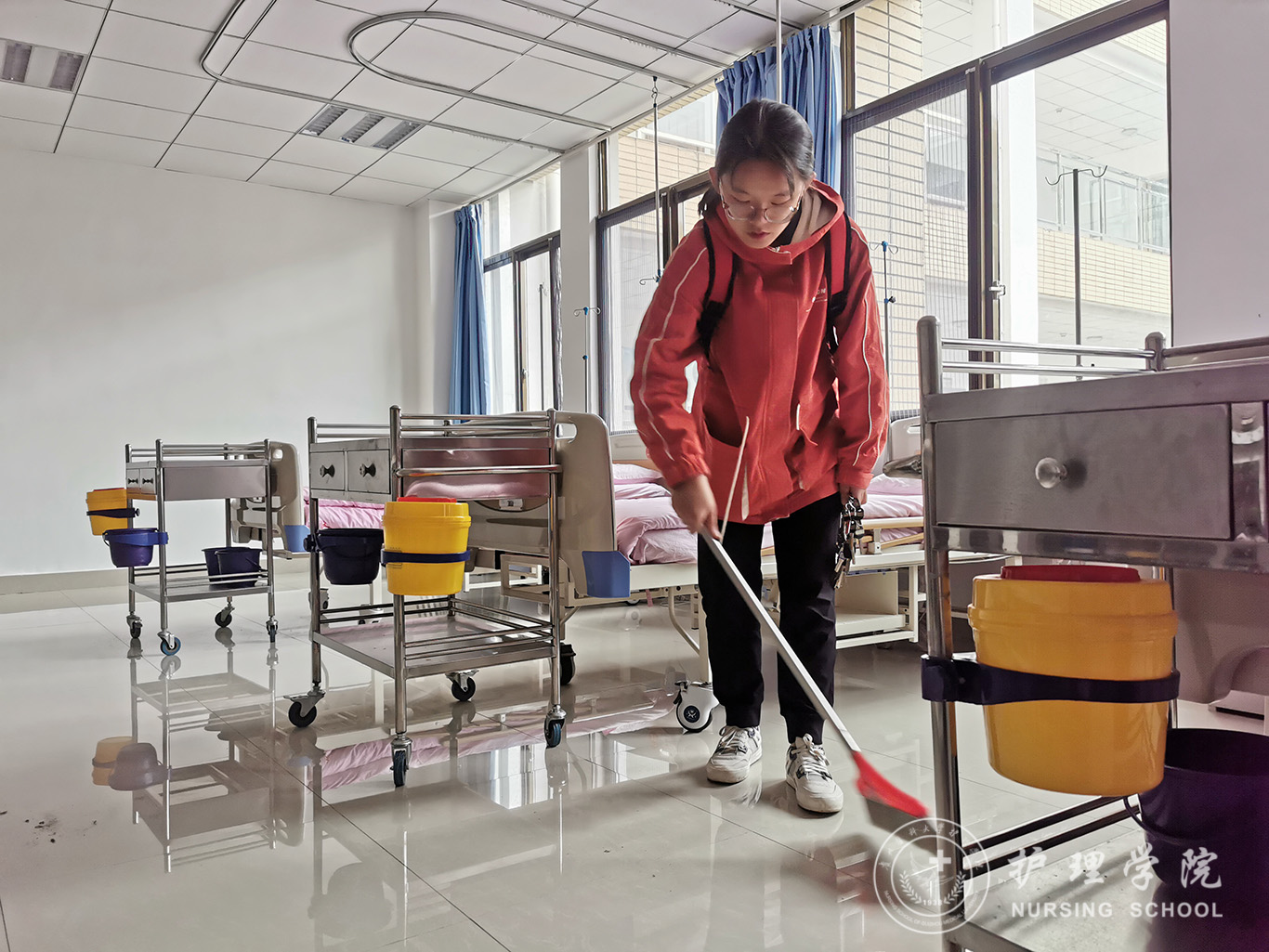 为深入贯彻落实习近平总书记在全国教育大会上的讲话,落实《中共中央国务院关于全面加强新时代大中小学劳动教育的意见》精神,培养德智体美劳全面发展的社会主义建设者和接班人,培养学生树立正确的劳动观念和形成劳动习惯,弘扬艰苦奋斗的精神,营造劳动最光荣、最伟大、最美丽的氛围。2020年-2021年第二学期,护理学2020级、助产学2020级的所有同学分批次的参加校园集体劳动实践课。劳动教育实践活动安排在百川楼BEAT365英国官网技能实验中心进行。活动由BEAT365英国官网技能实中心文红燕老师负责,各班劳动委员协助。