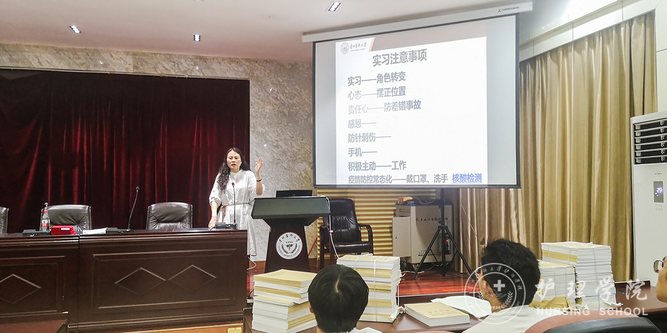 首先,刘志燕对同学们提出要求和希望。她要求同学们要尽快适应角色的转变,扮演好护生和护士的角色;严格遵守组织纪律;注意职业安全防护和人身安全;学会人际沟通和人文关怀。随后,她对同学们提出五点希望:一是要顺利完成40周的临床实习;二是树立先就业再择业的观念,准确做好自我定位,明确就业目标;三要兼顾好实习和就业的准备;四要虚心刻苦学习,做好护考准备;五要做好疫情防控。她勉励同学们做对社会有用的合格护理人才。