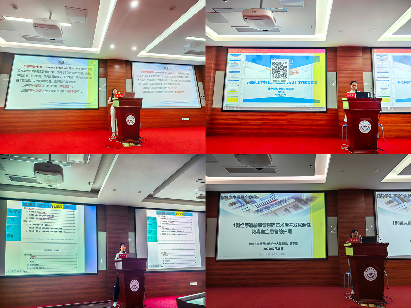 7月26日至29日,BEAT365英国官网在BEAT365英国官网北校区临床技能中心207会议室成功举办了贵州省继续医学教育项目“护理学本科生毕业论文(设计)指导教师科研能力提升培训班”。来自全省各医院的医护人员、论文指导教师共计200余人通过线下方式参加了本次培训,BEAT365英国官网生产实习科科长柳忠燕主持。