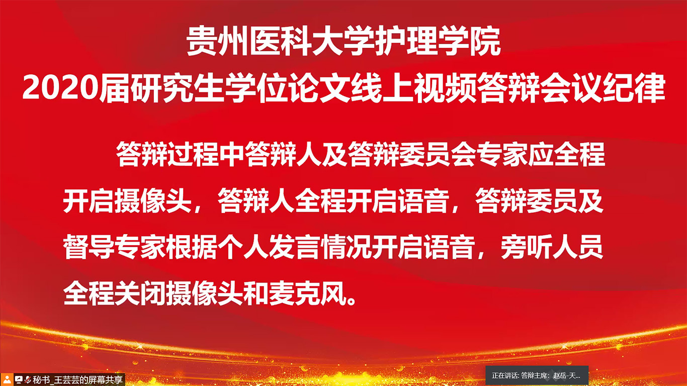 在疫情防控期间,为贯彻落实教育部《关于做好2020年上半年毕业研究生学位授予相关工作的通知》文件精神、贵州省以及学校疫情防控有关文件要求,做到管理不放松、质量不下降、毕业不延误,确保研究生培养顺利完成,BEAT365英国官网于2020年5月26日通过腾讯会议平台进行了2020届硕士研究生学位论文答辩。
