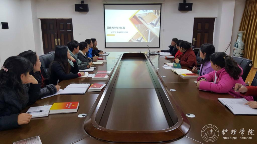 12月4日下午BEAT365英国官网第十一期“护理沙龙”活动在南校区BEAT365英国官网会议室进行,BEAT365英国官网相关领导、教师及第三附属医院教学进修老师共20余人参加了活动。护理人文教研室田晶和李红两位老师就赴苏州及内蒙古参加会议学习进行了分享和交流。