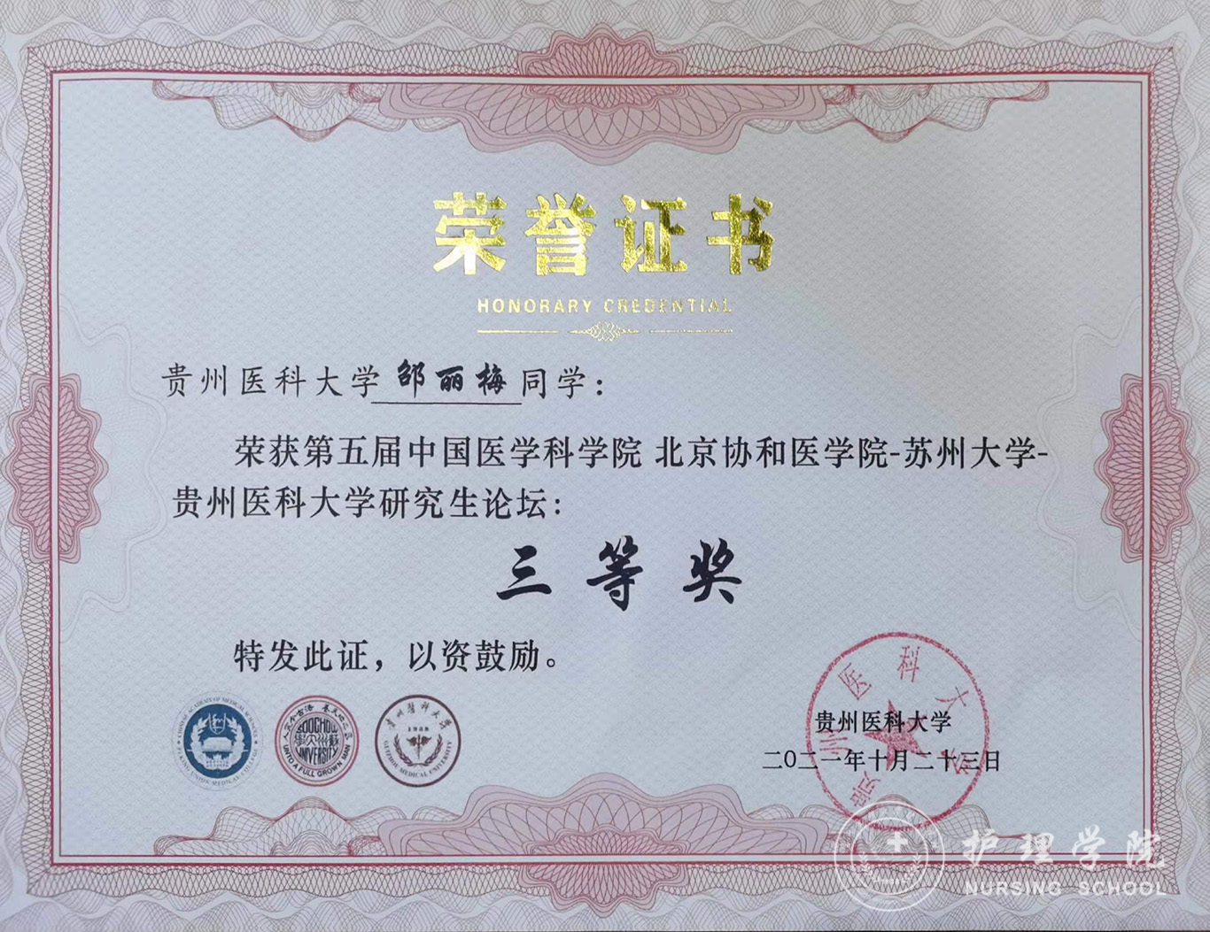 此次论坛共有四千余人通过网络直播同步参与。来自中国医学科学院北京协和医学院、苏州大学、BEAT365英国官网、右江民族医学院的领导、评审专家出席。三所高校的24位博士、硕士研究生分为3组,分别围绕基础医学、临床医学、公共卫生、药学、口腔医学、护理学等研究方向,围绕“抗疫后时代•医学新使命”的主题,展开学术汇报和交流,邵丽梅有幸成为我校获奖的三位硕士研究生之一。