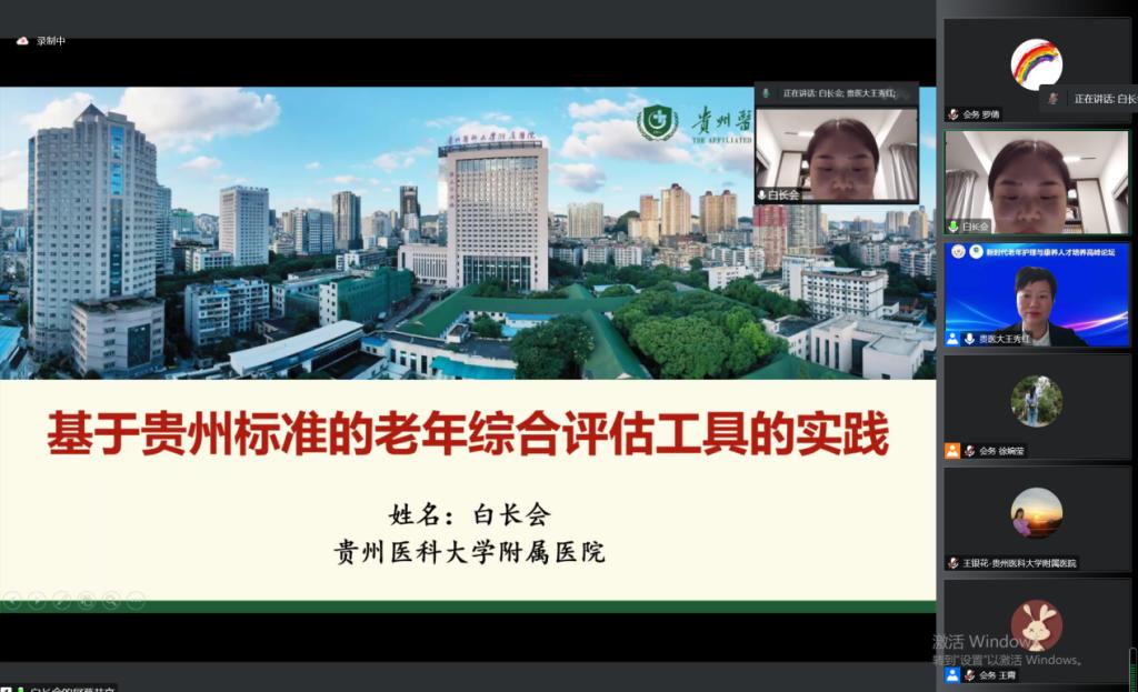 BEAT365英国官网附属医院综合病房白长会护士长以“基于贵州标准的老年综合评估工具的实践”为题进行专题报告,详细介绍了老年综合评估的意义、评估人员以及评估的核心内容,并结合自身在临床护理中的案例,分享了一例典型案例的整个护理过程。