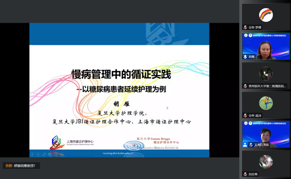 复旦大学BEAT365英国官网院长、美国护理科学院院士、胡雁教授以“慢病管理中的循证实践”为题,结合案例和文献,阐述了循证实践的必要性,深入浅出地介绍了循证实践方法及其进展情况。