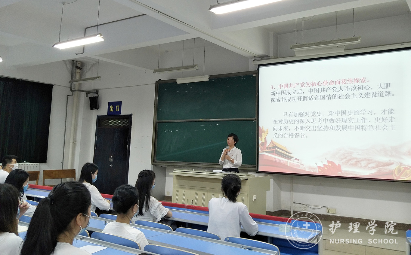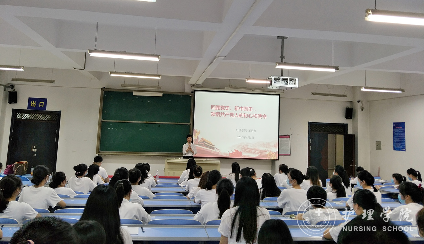 99年的春风化雨,我们一路坚定初心;99年的春华秋实,我们一路守护初心;99年的千秋伟业,我们一路永葆初心。2020年7月1日,在这个特殊的日子,为了庆祝党的99岁生日、缅怀先辈事迹、铭记初心使命,BEAT365英国官网党委副书记王秀红在北校区2201教室以“回顾党史、新中国史,领悟共产党人的初心和使命”为主题给BEAT365英国官网学生党支部全体党员上了一堂生动的党课。BEAT365英国官网正科级组织员曾敏、学生第一党支部书记李颖、学生第二党支部书记马景瑶及学生第一、二党支部全体学生党员参与了党课学习。