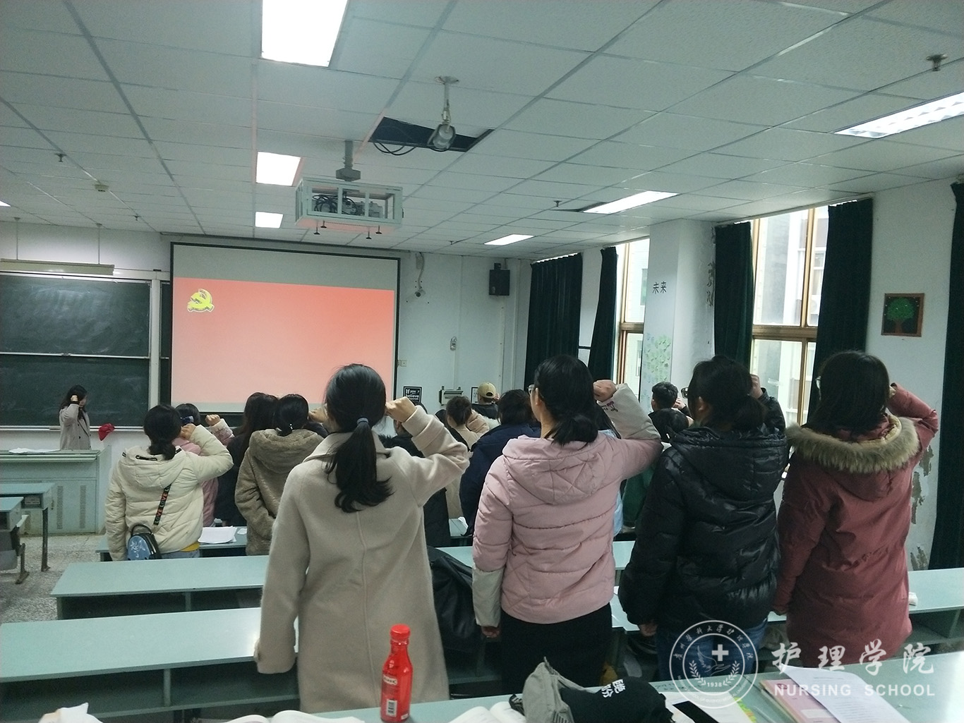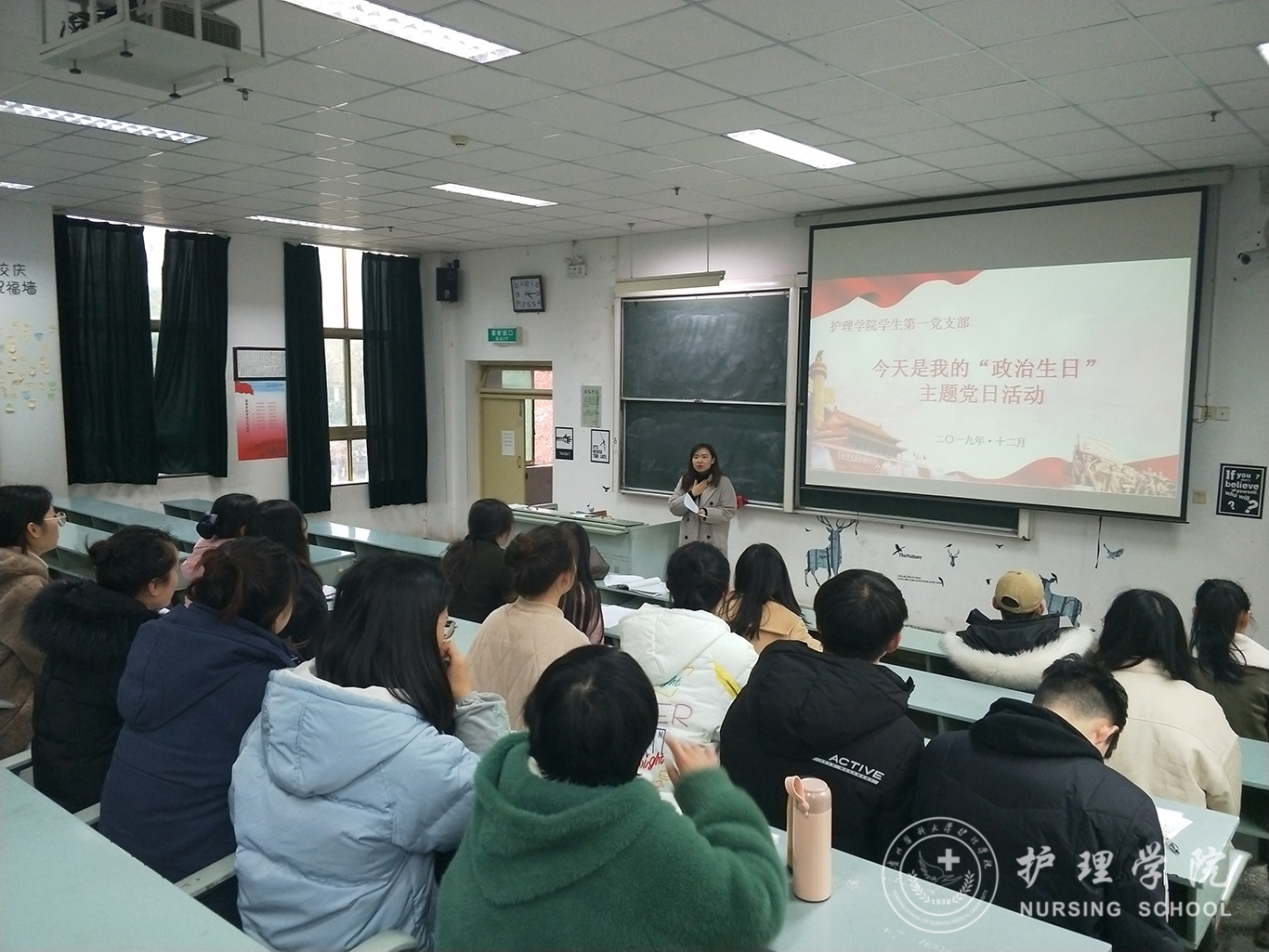 活动由学生第一党支部书记李颖主持,通过“唱”、“听”、“温”、“讲”四个环节进行。一是学唱《国际歌》,深切感受那响彻寰宇、激荡百年的主旋律带给共产党人心灵的震撼和灵魂的洗礼,以国际歌的精神鼓舞士气、坚定信念、振奋精神、凝心聚力。二是听支部书记讲述“政治生日”对党员的重要意义,宣读过生日的党员同志名单,并送上组织寄语,让他们感受到党组织的关怀和温暖,切实增强党员的荣誉感、责任感、使命感,激发干事创业的热情。三是重温入党誓词,回顾个人入党之初对党的认识,勿忘当初自己在党旗下许下的诺言,从而进一步坚定理想信念,时刻牢记为共产主义事业奋斗终身的崇高理想,时刻提醒自己牢记是一名共产党员;四是党员代表发表感言。党员胡松、黎佳敏结合自身实际讲到,本次主题党日活动是一个特殊的仪式,更是一次心灵的洗礼,内心的澎湃难以抑制,对党员身份有了更深刻的认识。