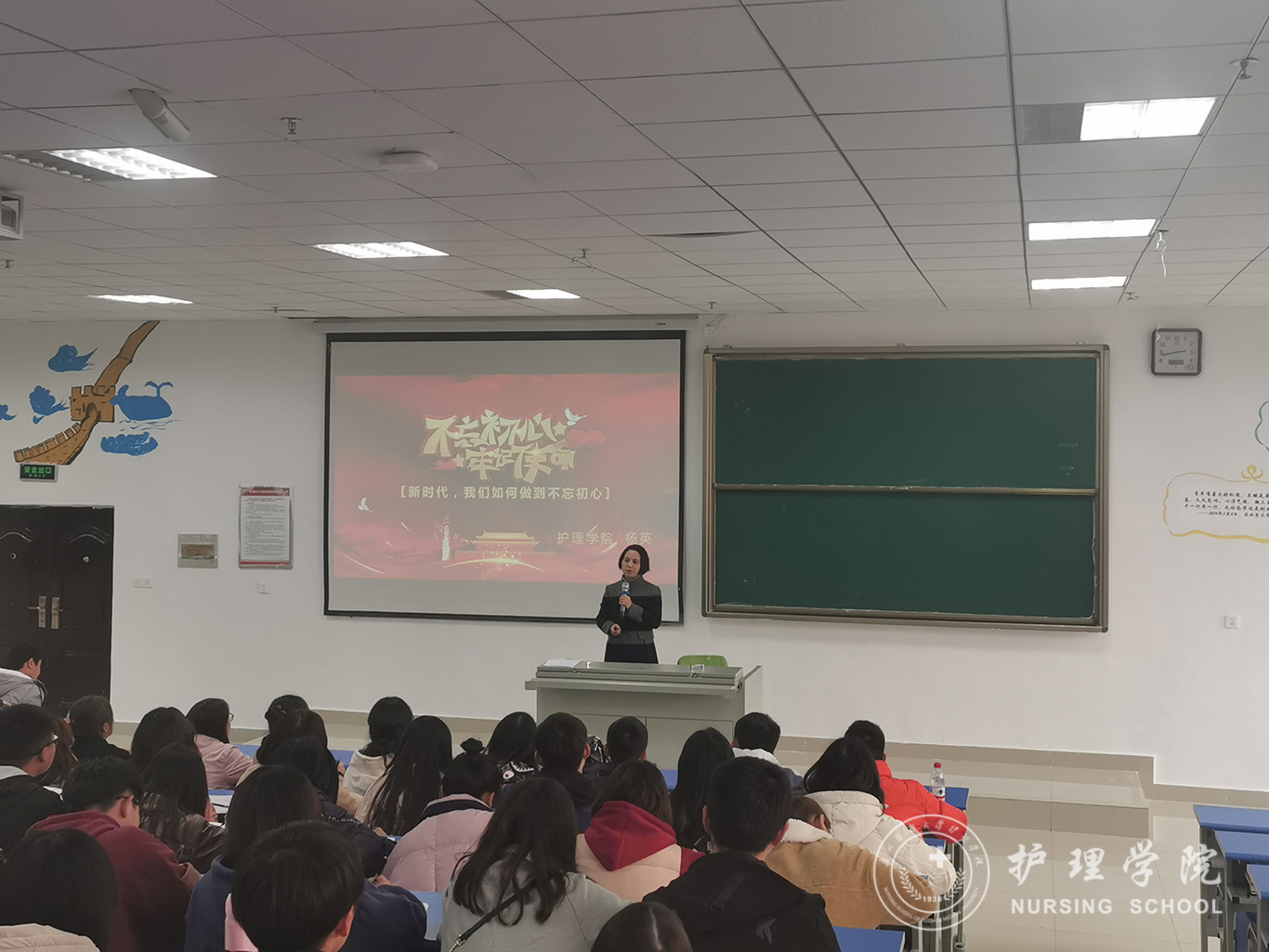 开班典礼结束后,杨英讲授了题为《新时代,我们如何做到不忘初心》的党课。授课结束后,全场响起热烈的掌声,同学们备受鼓舞,纷纷表示要深刻领悟杨英书记党课的内涵,认真学习理论知识,将学习贯彻习近平新时代中国特色社会主义思想融入学习、工作、生活中,时刻自觉以党员标准严格要求自己,发挥入党积极分子的先锋模范作用,积极为学院发展做出自己应有的贡献。