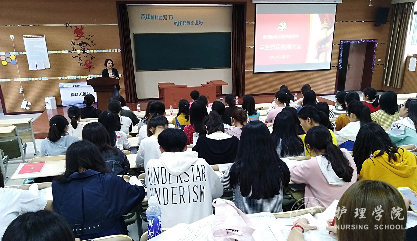7月8日,BEAT365英国官网学生第一、第二党支部在南校区百川楼阶梯教室召开了学生党员发展大会。BEAT365英国官网党委书记杨英、党委副书记王秀红、教职工党支部书记张黎、学生科科长曾敏、学生第一党支部书记李颖,部分辅导员、班主任,学生第一、第二党支部全体成员,全体发展对象参加了此次会议。会议由学生第二党支部书记马景瑶主持。