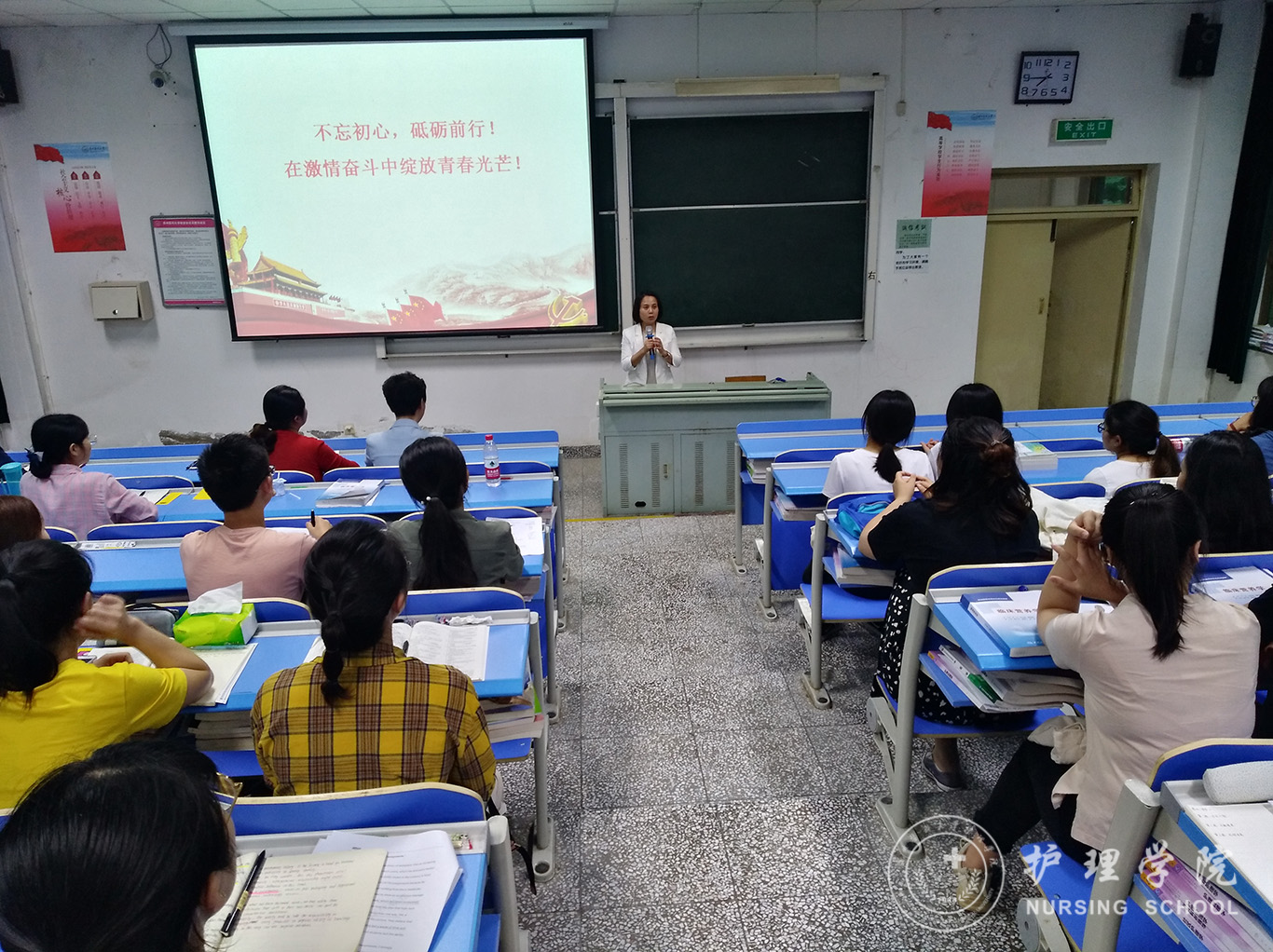 6月12日,BEAT365英国官网学生第一、第二党支部在北校区3301教室开展毕业生党员最后一次党课活动,学院党委副书记王秀红为毕业生党员讲授了题为《不忘初心,在激情奋斗中绽放青春光芒》的党课。学院党委书记杨英、学生科科长曾敏及全体本科生、研究生党员参加本次活动,学生第二党支部书记马景瑶主持。