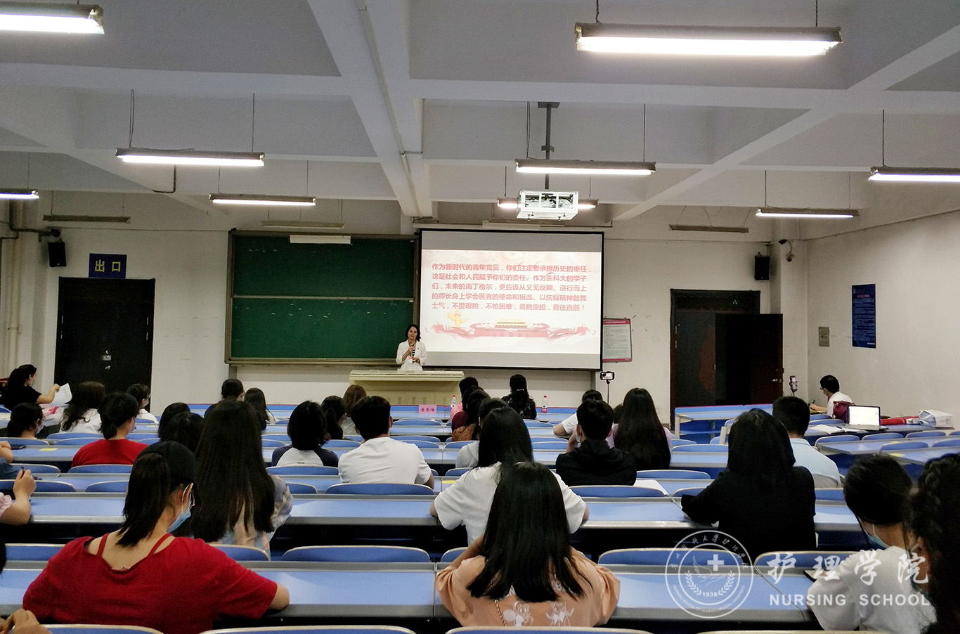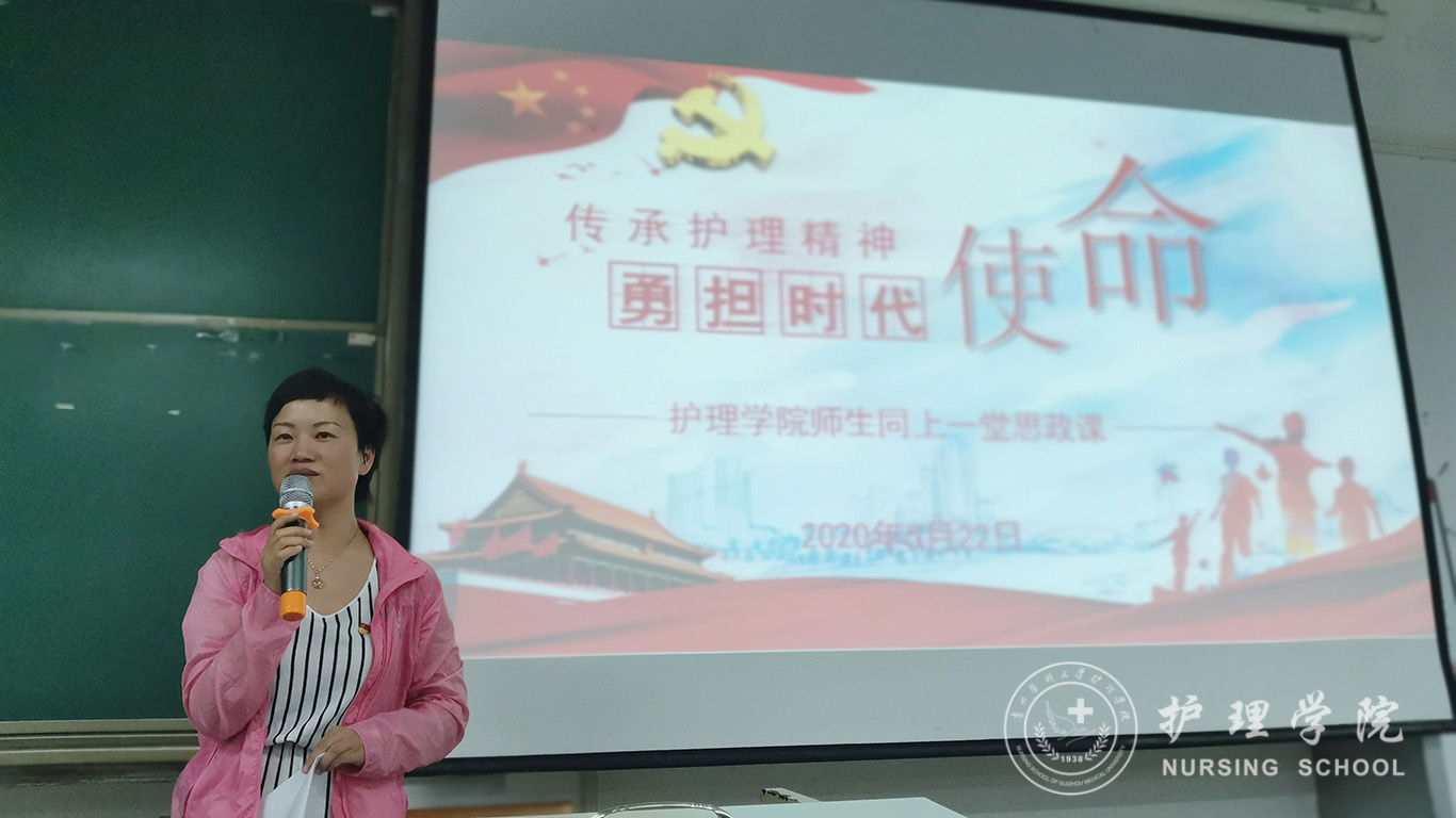 5月22日,BEAT365英国官网学生第一、二党支部在北校区2201教室开展了毕业生党员“最后一堂党课”活动。BEAT365英国官网党委书记杨英以《牢记初心使命弘扬护理情怀》为题为全体毕业生党员上最后一堂党课。BEAT365英国官网党委副书记王秀红、正科级组织员曾敏,综合办副主任、学生第一党支部书记李颖,学生第二党支部书记马景瑶及学生第一、二党支部全体毕业生党员通过线下的形式参与了党课学习,其他党员及入党积极分子通过线上的形式参与了党课学习。本次活动由王秀红主持。