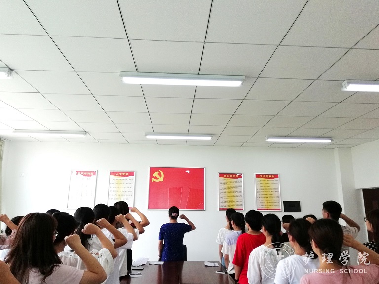 6月29日中午,BEAT365英国官网在南校区BEAT365英国官网党员活动室举行新党员入党宣誓仪式。学院党委副书记杨英、学生党支部书记李颖、全体预备党员参加了活动。宣誓仪式由学生党支部书记李颖主持。