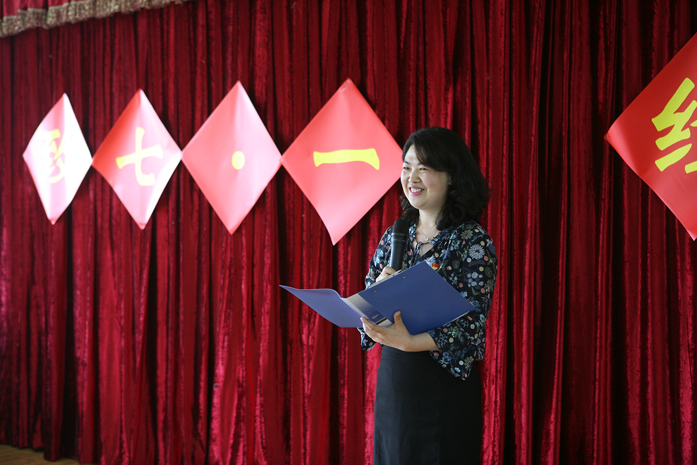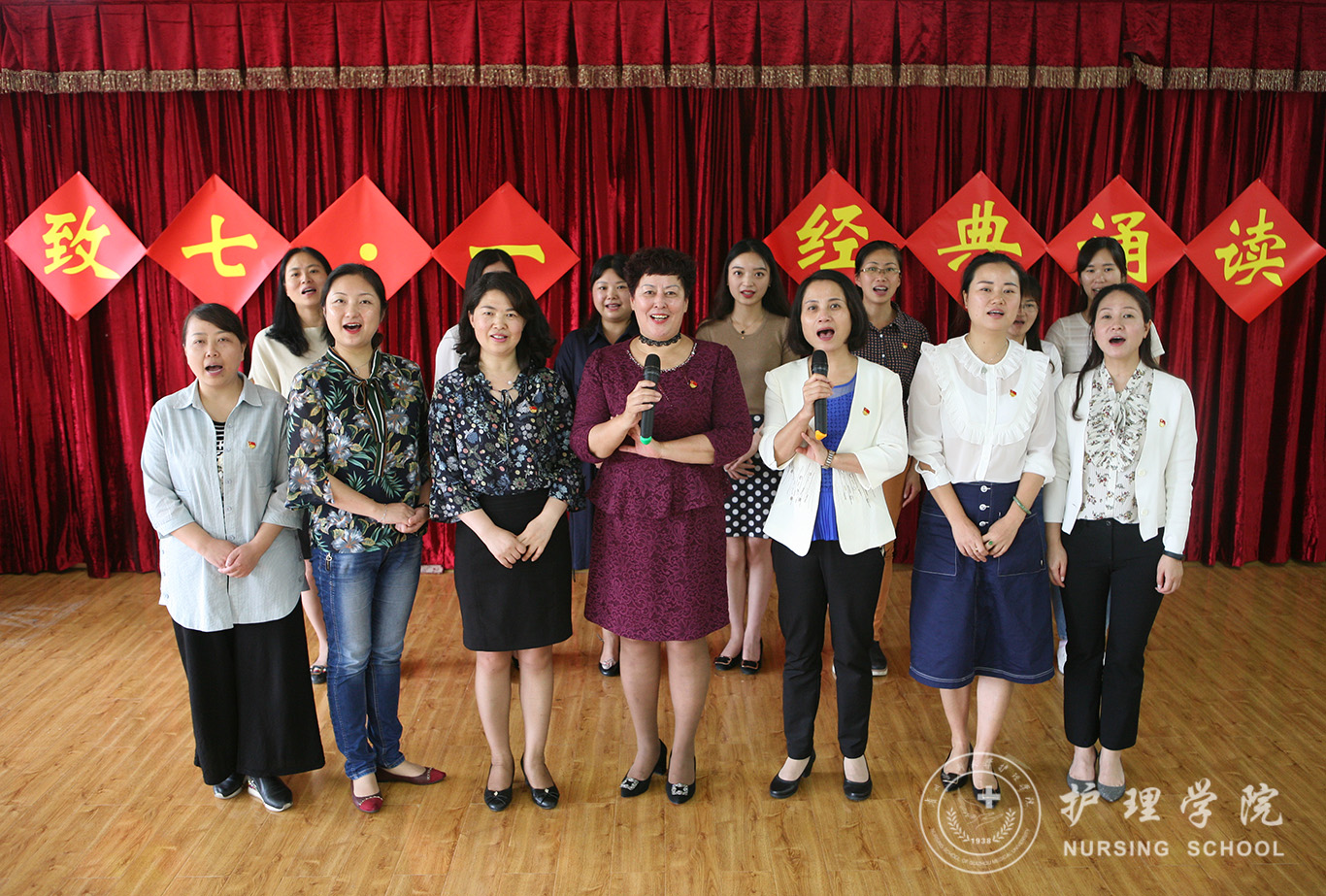 在诵读结束之后,在院党委书记杨英和院长贾秀英的带领下,全体党员齐声高唱了经典爱国曲目《我和我的祖国》,以这种特殊而有意义的方式向党的七十八华诞送上祝福。