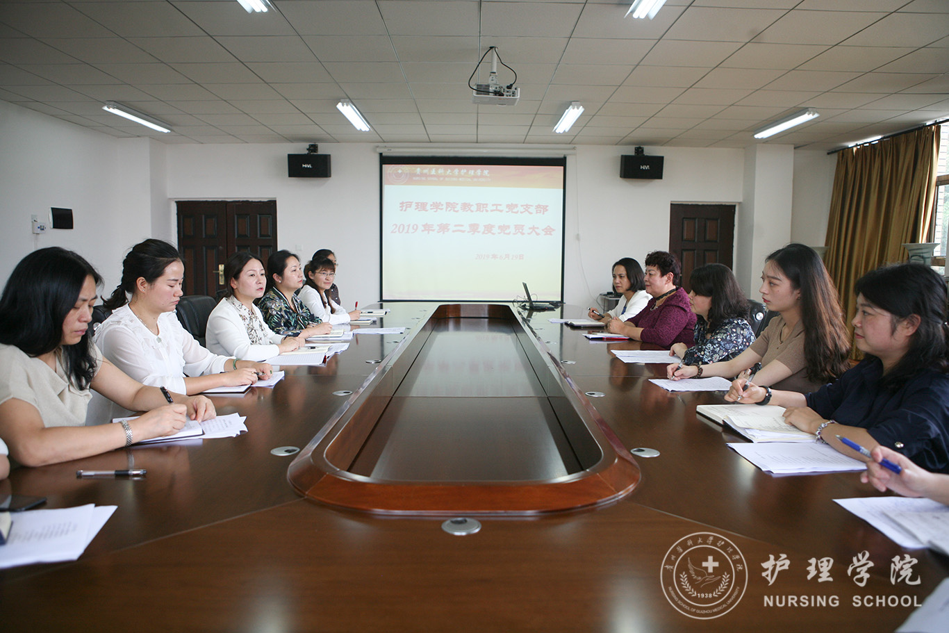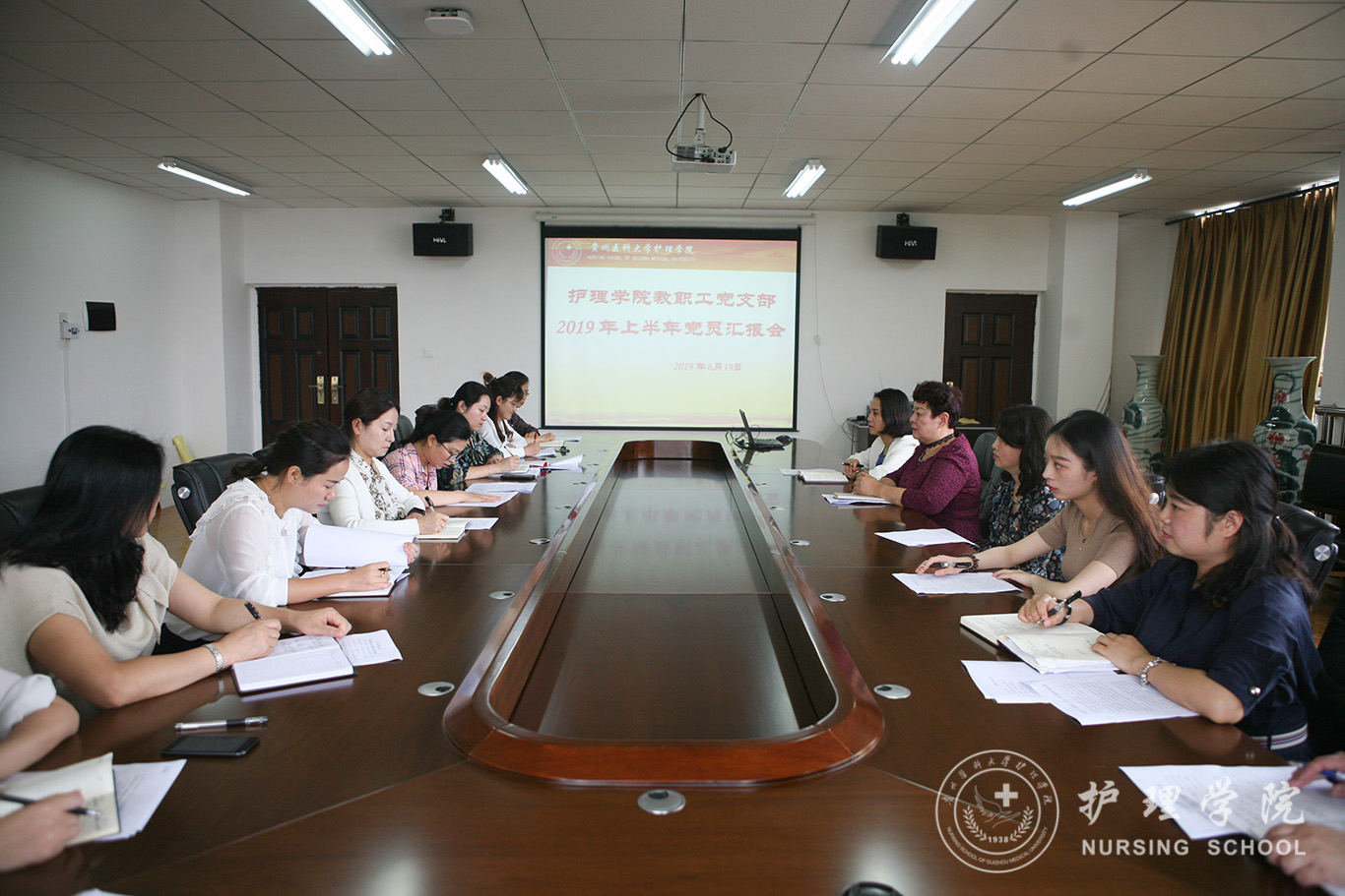 汇报结束后院党委书记杨英传达了学校“扫黑除恶专项斗争工作整改落实会议”精神;院长贾秀英通报了近期各项工作开展情况;张黎也对支部半年工作开展情况进行了汇报。随后支部宣传委员毕丽组织大家学习了《中国共产党党员教育管理工作条例》。